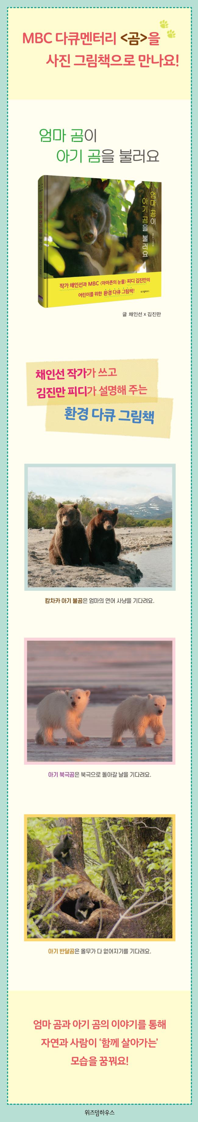 ¡¶¾ö¸¶ °õÀÌ ¾Æ±â °õÀ» ºÒ·¯¿ä¡·¿¡¼´Â ¾Ë·¡½ºÄ« ºÏ±Ø°õ, įÂ÷Ä« ºÒ°õ ±×¸®°í Áö¸®»ê ¹Ý´Þ°õ °¡Á·ÀÇ À̾߱⸦ ÅëÇØ °õ °¡Á·ÀÌ »ì¾Æ°¡´Â ȯ°æ°ú ÀÚ¿¬, ±âÈĸ¦ »ìÆìº¸°í °õ°ú Àΰ£ÀÌ °øÁ¸ÇÒ ¹æ¹ýÀ» »ý°¢ÇØ º¾´Ï´Ù.