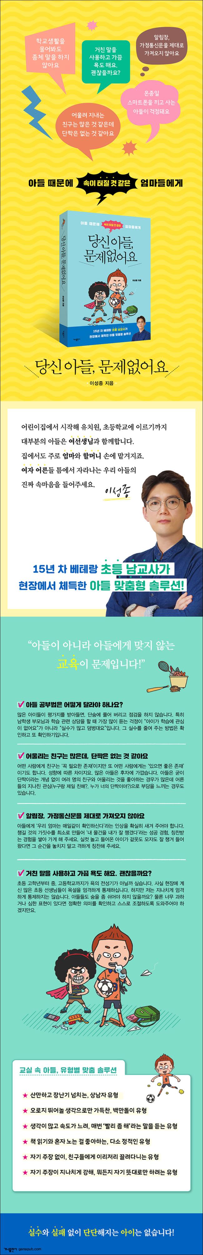 ¡º´ç½Å ¾Æµé, ¹®Á¦¾ø¾î¿ä¡»´Â 15³â°£ ±³½Ç¿¡¼ ¾ÆÀ̵é°ú ¸¸³ª¿À°í ÀÖ´Â ÇöÁ÷ ÃÊµî ±³»çÀÌÀÚ ÃÊµî µÎ ¾ÆµéÀ» Ű¿ì´Â ÀúÀÚ°¡ ÇöÀå¿¡¼ üµæÇÑ ¾Æµé ¸ÂÃãÇü ¼Ö·ç¼ÇÀ» ´ãÀº Ã¥ÀÌ´Ù.