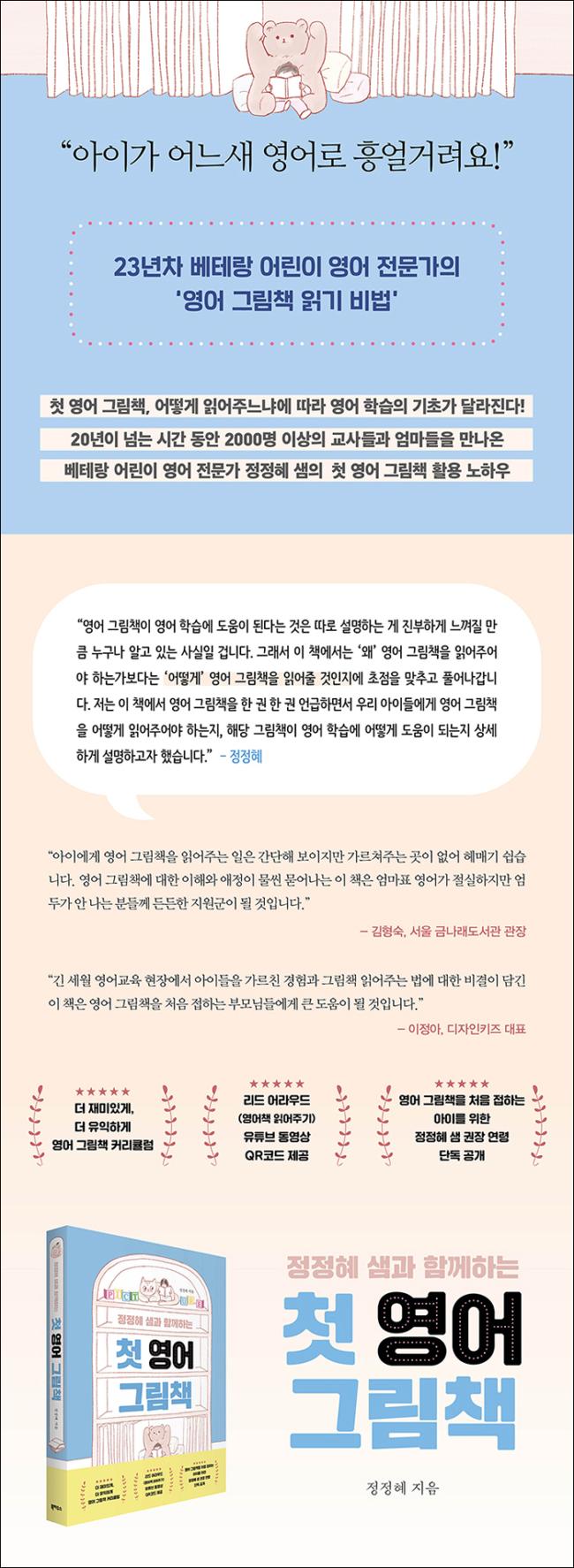 Á¤Á¤Çý ¼±»ý´ÔÀº ¾î¶² ¿µ¾î ±³À縦 ¼±ÅÃÇÏµç ¿µ¾î ±×¸²Ã¥À¸·Î ³¡À» ¸Î´Â, ±×¸²Ã¥¿¡ ´ëÇÑ ¾ÖÁ¤ÀÌ ±í°í ¶ß°Å¿î ºÐÀÔ´Ï´Ù. ±ä ¼¼¿ù ¿µ¾î±³À° ÇöÀå¿¡¼ ¾ÆÀ̵éÀ» °¡¸£Ä£ °æÇè°ú ±×¸²Ã¥ ÀоîÁÖ´Â ¹ý¿¡ ´ëÇÑ ºñ°áÀÌ ´ã±ä ÀÌ Ã¥Àº ¿µ¾î ±×¸²Ã¥À» óÀ½ Á¢ÇÏ´Â ºÎ¸ðµé¿¡°Ô Å« µµ¿òÀÌ µÉ °ÍÀÔ´Ï´Ù.