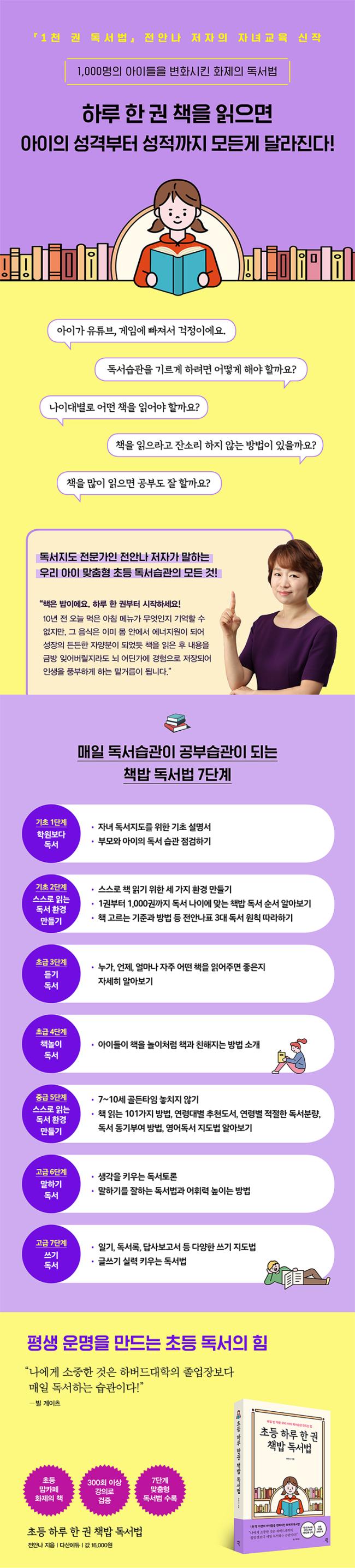 ÀÌ Ã¥¿¡¼ ÀúÀÚ´Â µ¶¼¹ý °ÀÇ¿Í ½ÇÁ¦ ÃÊµî ¾Æµé µÑÀ» ½ÇÁ¦·Î Ű¿ì¸é¼ ±ú¿ìÄ£ ½ÇÀü ÃÊµî µ¶¼¹ýÀÇ ¸ðµç °ÍÀ» ¿À·ÔÀÌ ´ã¾Ò´Ù. ±âÃÊ-ÃʱÞ-Áß±Þ-°í±ÞÀÎ ÃÑ 7´Ü°è·Î ³ª´² ÀÚ³àÀÇ µ¶¼Áöµµ Àû±â´Â ¾ðÁ¦ÀÎÁö, ³ªÀÌ´ë¿¡ ¸Â´Â ÃÖÀûÀÇ µ¶¼¹ý°ú µ¿±âºÎ¿© ¹æ¹ý, Ãßõµµ¼µéÀ» ¸ðµÎ Á¦½ÃÇÑ´Ù. Ã¥¿¡ ´ã±ä ¹æ¹ý´ë·Î ¾ÆÀÌ¿¡°Ô ÀÚ¿¬½º·´°Ô Ã¥ Àд ½À°üÀ» ¸¸µé¸é ¾î´À ¼ø°£ À¯Æ©ºê³ª °ÔÀÓº¸´Ù Ã¥Àå ³Ñ±â´Â °Ô ´õ Áñ°Ì°Ô Àç¹ÌÀÖ´Ù°í ¸»ÇÏ´Â ¾ÆÀÌÀÇ ¸ð½ÀÀ» º¼ ¼ö ÀÖÀ» °ÍÀÌ´Ù.