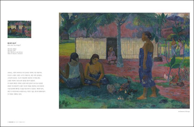 1891³â 6¿ù, °í°»Àº ²Þ¿¡ ±×¸®´ø ¿ø½Ã ¼¼°è, ŸÈ÷Ƽ¿¡ µµÂøÇß´Ù. ±×°¡ ±â´ëÇϰųª ã¾Æ Çì¸Å´ø ¿ø»ö°ú ¼ø¼ö, ¾ß¸¸ÀÇ °í°áÇÔÀÌ ±×ÀÇ ´«¾Õ¿¡ ÆîÃÄÁ³´Ù. ŸÈ÷Ƽ ¿øÁֹεéÀÇ ¹°³îÀÌ, ¶Ç´Â °í±âÀâÀÌÇÏ´Â ¸ð½ÀÀº µµ½ÃÀÎ °í°»ÀÇ ´«À» »ç·ÎÀâ¾ÒÀ¸¸®¶ó. °í°» ƯÀ¯ÀÇ Àå½ÄÀûÀÎ ÆÐÅÏÀÌ °¡µæÇÏÁö¸¸, º¸¶ùºû ²ÞÀÇ »ö¿¡¼ ȲÅä»ö ÇÇºÎ¿Í ³ì»öÀÇ Ç⿬ÀÌ ¸¶Ä¡ ¿ø½Ã ½£ÀÌ ¿¬ÁÖÇÏ´Â ¿ÀÄɽºÆ®¶óó·³ ¿ªµ¿ÀûÀÌ´Ù. °Å´ëÇÑ ³ª¹« ¹Øµ¿ÀÌ ÀÛǰÀÇ Á߽ɺθ¦ °üÅëÇÏ´Â ±¸µµ ¿ª½Ã, ¿ø½ÃÀûÀÎ ¿ªµ¿¼º°ú ¸®µëÀ» ÀھƳ»°í ÀÖ´Ù.