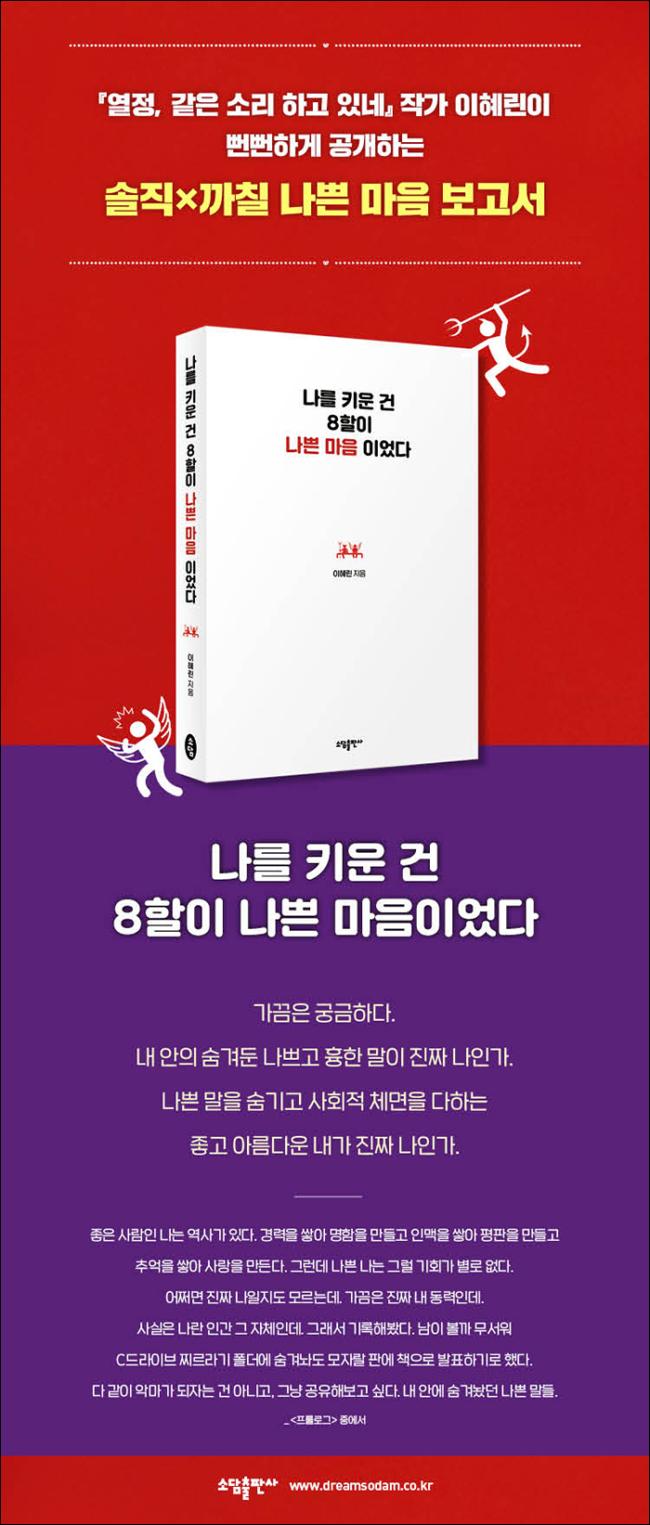 2005³â ¿¬¿¹ºÎ ±âÀÚ·Î »çȸ»ýȰÀ» ½ÃÀÛÇÑ ÈÄ ´ëºÎºÐÀÇ ³ª³¯À» ȸ»ç ÈÀå½Ç ±¸¼® Ä¿¡¼ ´«¹°À» ÈÉÄ¡¸ç º¸³Â´Ù. ¾î·Á¼ºÎÅÍ ¿øÇß´ø ÀλýÀº ±×·± °Ô ¾Æ´Ï¾úÁö¸¸, µüÈ÷ Àß³ °Íµµ ¾Æ´Ï°í ±Ù¸é¡¤¼º½ÇÇÏÁöµµ ¸øÇ߱⿡ ÀÏ´Ü ¹öƼ°í Âü¾Ò´Ù. ±×·¯´Ù º¸´Ï ¼º°ø±îÁø ¾Æ´Ï¾îµµ, »çȸ»ýȰ ¶§¹®¿¡ ºôµù ¿Á»ó¿¡¼ ¶Ù¾î³»¸®°í ½ÍÀº ¸¶À½Àº ´Ù¼Ò ´Ù½º¸± ¼ö ÀÖ¾ú´Ù. ÆÇŸ½ºÆ½ÇÏ°Ô Áö¶ö¸ÂÀº 20´ë ÈĹÝÀ» º¸³»¸ç ¶Ç·¡ ½Ì±ÛµéÀÇ À̾߱⠡ìù³¯¹ã¿£ ¸®Çã¼³ÀÌ ¾ø´Ù¡í¿Í ¶Ç·¡ ÀÎÅϵéÀÇ À̾߱⠡ì¿Á¤, °°Àº ¼Ò¸® Çϰí ÀÖ³×¡í¸¦ ½è´Ù. ÀÌµé ¼Ò¼³¿¡ ¹Ìó Ç®¾î³»Áö ¸øÇß´ø, ¼Ò¼ÒÇÏÁö¸¸ ÁøÂ¥ °í¹ÎÀ» ÀÌ Ã¥¿¡ ´ã¾Ò´Ù. ¼º°øÇÏ´Â Áö¸§±æ±îÁø ¾È µÅµµ, ¿ä·É²¯ »ì¾Æ³²´Â ¡®²Ä¼ö¡¯´Â µÉ ¼ö ÀÖÀ¸¸®¶ó ¹Ï´Â´Ù. 20´ë ÈĹÝÀº ±×·°Àú·° ¹öÅß³ÂÁö¸¸, 30´ë°¡ µÇ´Ï ¶Ç ´Ù¸¥ °¢¾ç°¢»öÀÇ ½ºÆ®·¹½º°¡ µ¤Ãļ µµ·Î »çÃá±â¸¦ ¾Î°í ÀÖ´Ù.