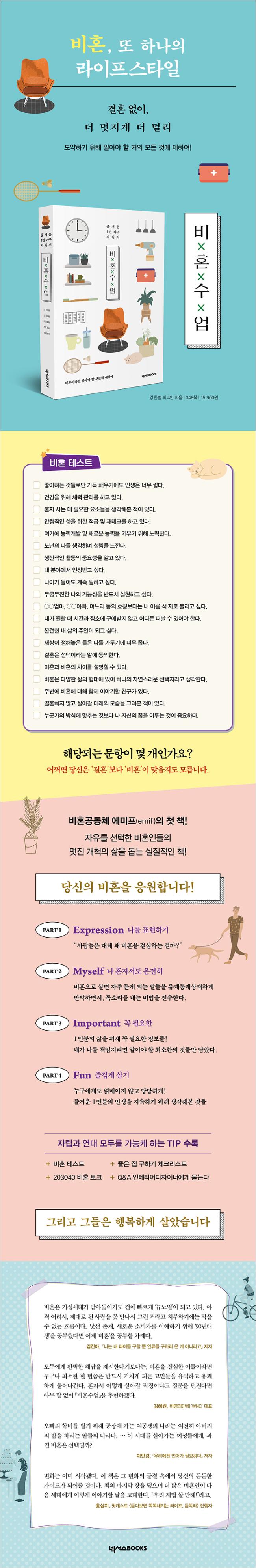 Àϰú °áÈ¥Çß´Ù°í ¸»ÇÑ ¹è¿ì ±è¼Çü ¾¾¸¦ º¸¶ó. °áÈ¥ Á» ¾È ÇÏ¸é ¾î¶²°¡. ¼¼»óÀº ÇÏ°í ½ÍÀº ÀÏ·Î °¡µæÇÏ´Ù. ÀÌ Ã¥À» Àаí ÀÖ´Â »ç¶÷µéµµ °¢ÀÚ ºñÈ¥À» °á½ÉÇÑ ¼ø°£Àº ´Þ¶ú°ÚÁö¸¸, ³»°¡ ³ª·Î Àß»ì°í ½Í´Ù´Â ¿¸ÁÀº ¸ðµÎ µ¿ÀÏÇÏ´Ù. ³»°¡ ³ª·Î Àß»ì±â À§Çؼ´Â ÁÖ°Å, °æÁ¦ µîÀÇ ¹°¸®ÀûÀÎ ¿ä¼Ò°¡ Áß¿äÇÑ ¸¸Å ¡®³ª´Â È¥ÀÚ°¡ ¾Æ´Ï´Ù¡¯, ¡®ÀÌ»óÇÑ »ç¶÷ÀÌ ¾Æ´Ï´Ù¡¯¶ó´Â ÀÚ±â È®½ÅÀ» °®´Â °Íµµ ¸Å¿ì Áß¿äÇÏ´Ù. ÀÌ¿Õ ÇÑ ¹ø »ç´Â °Å ´©±º°¡ÀÇ »ç¶÷À¸·Î ±â¾ïµÇ±âº¸´Ù ³ªÀÇ À̸§À¸·Î ºñÈ¥ÀÇ »îÀ» ¸ÚÁö°Ô »ì¾Æº¸´Â °Ç ¾î¶³±î. ÀÚ½ÅÀÇ À̸§ ¼® ÀÚ¸¦ ºû³»´Â »ç¶÷ÀÌ µÇ´Â °Íµµ ÃæºÐÈ÷ ¸ÚÁø ÀÏÀÌ´Ù.