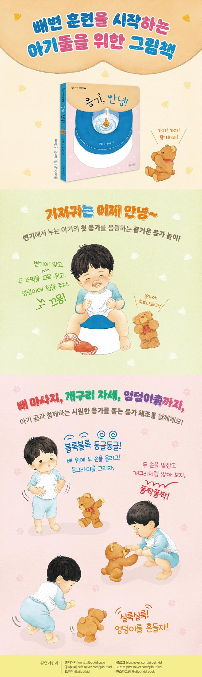 ¡¶ÀÀ°¡, ¾È³ç!¡·Àº ±âÀú±Í ´ë½Å º¯±â¿Í Ä£ÇØÁ®¾ß ÇÏ´Â ¾Æ±âµéÀ» À§ÇÑ ¹èº¯ ÈÆ·Ã ±×¸²Ã¥ÀÔ´Ï´Ù. ¹èº¯ ÈÆ·ÃÀÇ Àü °úÁ¤À» ÇϳªÀÇ Àç¹ÌÀÖ´Â ³îÀÌó·³ º¸¿© ÁÖ´Â ÀÌ Ã¥Àº, ÀÀ°¡ üÁ¶¸¦ ÅëÇØ ¾Æ±â°¡ ³î¸é¼ ½±°Ô ¹èº¯ ÈÆ·ÃÀ» Çϰí, ¿¹»Û ¶ËÀ» ´ ¼ö ÀÖ°Ô µµ¿ÍÁÝ´Ï´Ù. »ç¶û½º·¯¿î ¾Æ±âÀÇ Ã¹ º¯±â »ç¿ëÀ» ÀÀ¿øÇÏ´Â ±Í¿©¿î ¾Æ±â °õÀÇ ÇູÇÑ ÀÀ°¡ ½Ã°£À» µû¶ó°¡ º¸¼¼¿ä!