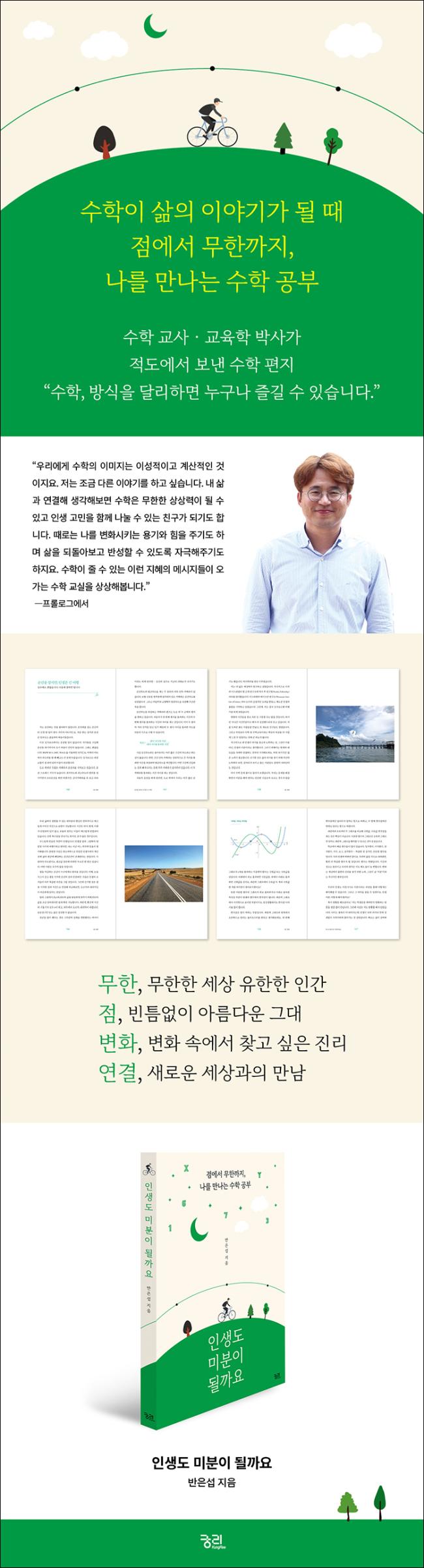 ¡°Çб³¿¡¼ ¹è¿î ÇÔ¼öµéÀÌ ¸¹ÀÌ ÀÖ½À´Ï´Ù. ÀÏÂ÷ÇÔ¼ö, ÀÌÂ÷ÇÔ¼ö, »ïÂ÷ÇÔ¼ö, Áö¼ö, ·Î±×, »ï°¢ÇÔ¼ö¡¦ º¹ÀâÇÑ °Í °°Áö¸¸, ´Ü¼øÇÑ ÇÔ¼öµéÀÔ´Ï´Ù. ¿ì¸® Àλý¿¡ ºñÇÏ¸é ¸»ÀÌÁÒ. ¿ì¸®ÀÇ »îÀ» ½ÄÀ¸·Î ³ªÅ¸³»¸é, ÈξÀ ´õ º¹ÀâÇÑ ÇÔ¼ö°¡ µÉ °ÍÀÔ´Ï´Ù. ÇÔ¼ö´Â º¯ÈÀÔ´Ï´Ù. ½Ã°£°ú Àå¼Ò´Â ¹°·ÐÀÌ°í ¿ì¸®ÀÇ »ý°¢Àº ½Ãµµ ¶§µµ ¾øÀÌ ´Ã º¯ÇÕ´Ï´Ù. º¯ÇÏ´Â ¼¼»ó¿¡¼ ºÒº¯ÀÇ Áø¸®¸¦ ã±â À§ÇÑ ³ë·Â, ±×°ÍÀÌ °ð ¡®¹ÌºÐ¡¯À̶ó´Â Àû±ØÀûÀÎ ÇàÀ§ÀÔ´Ï´Ù. ¿ì¸®ÀÇ Àλýµµ ¸¶Âù°¡Áö·Î ¹ÌºÐÀ̶ó´Â °úÁ¤À» ÅëÇØ ¾î¶»°Ôµç ÇØ¼®Çس¾ ¼ö ÀÖ½À´Ï´Ù. ±×¸®°í ±× Àǹ̸¦ ãÀ» ¼ö ÀÖ°ÚÁö¿ä.¡± _122~127ÂÊ