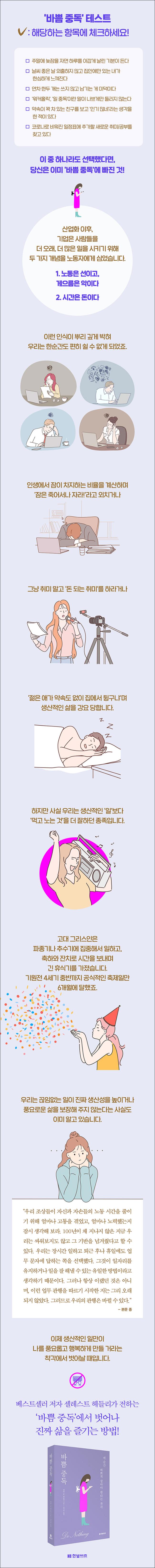 ÁÙ¾îµéÁö ¾Ê´Â ¾÷¹«¿¡ ÁöÃİ¡´ø ¾î´À ³¯, ÀÚ½ÅÀÇ »îÀ» µ¹¾Æº¸°Ô µÈ ±×³à´Â ¿ì¸®°¡ ¿Ö ¡®¹Ù»Ý Áßµ¶¡¯¿¡ ºüÁ³´ÂÁö, ¾ðÁ¦ºÎÅÍ ¿©À¯¸¦ Á˾ǽÃÇÏ°Ô µÆ´ÂÁö, ¾î¶»°Ô Çϸé ÁøÂ¥ »îÀ» µÇãÀ» ¼ö ÀÖÀ»Áö °í¹Î¿¡ ºüÁ³´Ù. ±×¸®°í ¹®Á¦ÀÇ ¿øÀΰú ¹æ¹ýÀ» ã¾Ò´Ù. ±×³à´Â ¡¶¸»¼¾½º¡· ¶§Ã³·³ ¿ì¸®ÀÇ »îÀ» À±ÅÃÇÏ°Ô ¸¸µé¾î ÁÙ ÀÌ Æ¯º°ÇÑ ±ú´ÞÀ½À» ¸¹Àº »ç¶÷°ú °øÀ¯ÇÏ°í ½Í¾îÁ³´Ù.