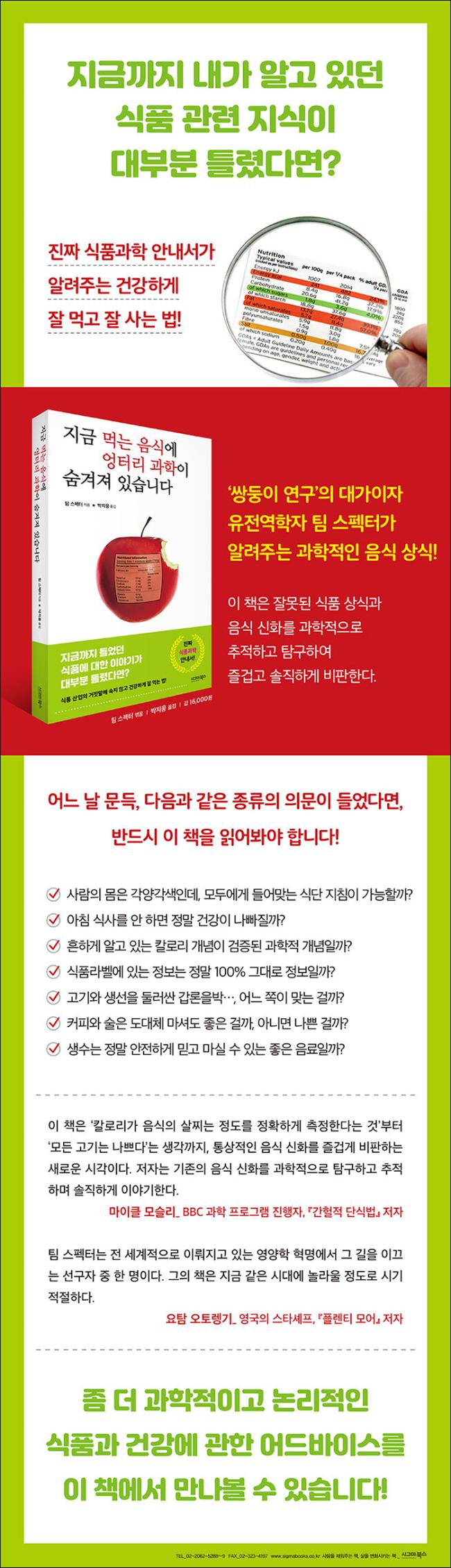 ¾î¼¸é ¿ì¸®°¡ Áö±Ý±îÁö ¾Ë°í ÀÖ´ø ½Äǰ »ó½Ä ȤÀº À½½Ä »ó½ÄÀº ¸ðµÎ Ʋ·ÈÀ»Áöµµ ¸ð¸¥´Ù. ¸ö¿¡ ÁÁ´Ù´Â ¿¬±¸°á°ú°¡ ÀÖ¾î¼ ¸Ô¾ú´Âµ¥, ¾ÖÃÊ¿¡ ¿¬±¸ ÀÚü°¡ ±Ù°Å°¡ ºó¾àÇϰųª µ¥ÀÌÅͰ¡ ¿Ö°îµÇ¾î ÀÖ´Ù¸é? ÀÌ Ã¥Àº ¡®Ä®·Î¸®°¡ À½½ÄÀÇ »ìÂî´Â Á¤µµ¸¦ Á¤È®ÇÏ°Ô ÃøÁ¤ÇÑ´Ù¡¯ºÎÅÍ ¸ðµç °í±â´Â ³ª»Ú´Ù¡®´Â »ý°¢±îÁö, ´ç¿¬ÇÏ´Ù ¿©°ÜÁö´ø À½½Ä »ó½ÄÀ» ºñÆÇÇÏ°í °úÇÐÀûÀ¸·Î ÃßÀûÇÏ´Â À̾߱â´Ù. ½ÖµÕÀÌ ¿¬±¸ÀÇ ´ë°¡ÀÌÀÚ ¡º´ÙÀÌ¾îÆ® ½ÅÈ¡» ÀúÀÚÀÎ À¯Àü¿ªÇÐÀÚ ÆÀ ½ºÆåÅͰ¡ ½Äǰ¿¡ ´ëÇÑ À¯»ç°úÇÐ, °á°ú¿¡ ´ëÇÑ °îÇØ, ½Äǰ »ê¾÷ÀÇ ±³¹¦ÇÑ ºñÁî´Ï½º¿¡ ´ëÇØ À̾߱âÇÑ´Ù.