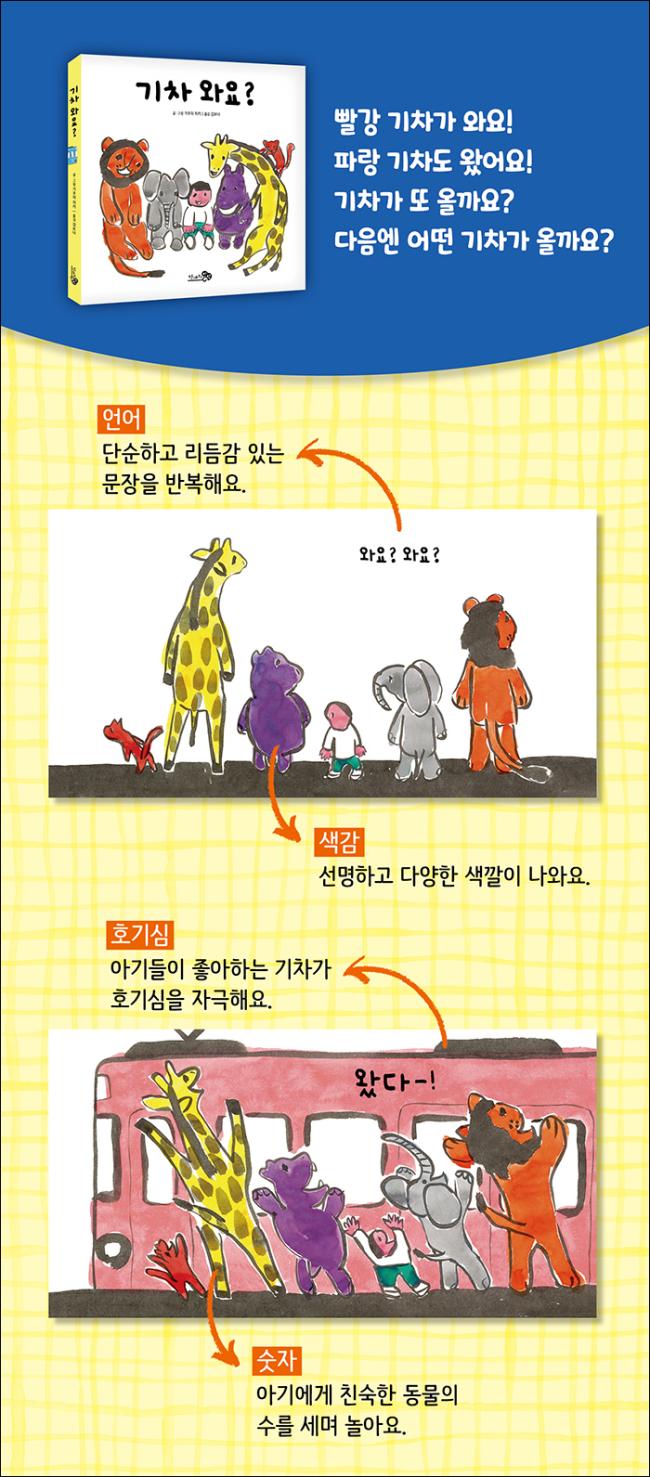 ¾ÆÀÌ¿Í µ¿¹° Ä£±¸µéÀÌ ±âÂ÷¸¦ ±â´Ù·Á¿ä. ¿Í¿ä? ¿Í¿ä? ÇÏ°í ±â´ë°¨¿¡ Â÷ ±â´Ù¸®¸é ±âÂ÷°¡ ¿Í¿ä! À̹ø ±âÂ÷´Â ±â´Ù¸®´ø ±âÂ÷°¡ ¾Æ´Ï¾ú¾î¿ä. ±âÂ÷°¡ ¶Ç ¿Ã±î¿ä? ´ÙÀ½¿£ ¾î¶² ±âÂ÷°¡ ¿Ã±î¿ä? ¡´±âÂ÷ ¿Í¿ä?¡µ´Â ¾ÆÀ̵éÀÇ È£±â½ÉÀ» ÀÚ±ØÇÏ¸ç ±â´Ù¸®´Â Áñ°Å¿òÀ» »ý»ýÈ÷ Ç¥ÇöÇÑ ±×¸²Ã¥ÀÌ¿¡¿ä.