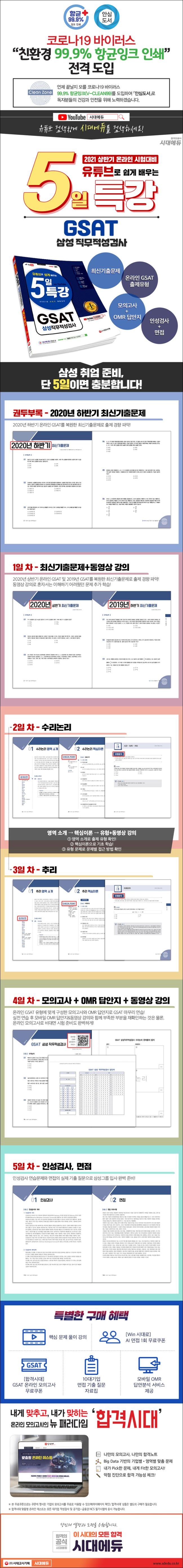 ¿Â¶óÀÎ ½ÃÇè´ëºñ À¯Æ©ºê¿Í ÇÔ²²ÇÏ´Â 5ÀÏ Æ¯° GSAT »ï¼º Á÷¹«Àû¼º°Ë»ç(2020 ÇϹݱâ)[°³Á¤1ÆÇ] SDÀû¼º°Ë»ç¿¬±¸¼Ò Àú | ½Ã´ë°í½Ã±âȹ | 2020³â 10¿ù [ÀýÆÇ]
