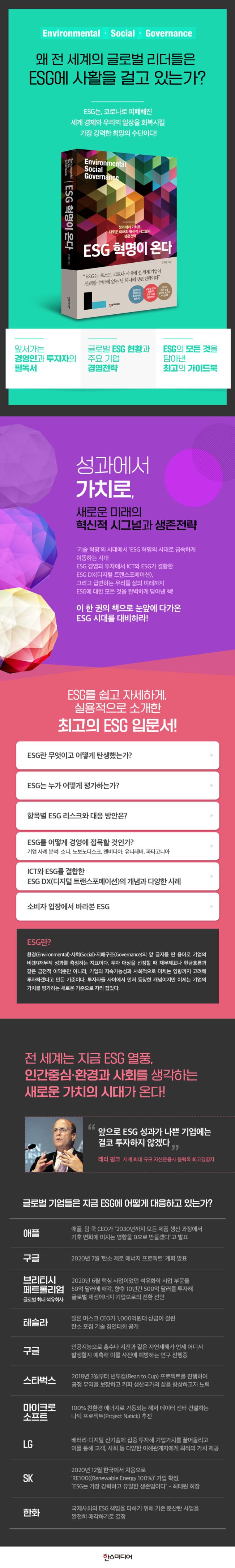 Äڷγª°¡ »ç¶óÁö¸é ±×µ¿¾È Äڷγª·Î µ¤¿©Á³¾ú´ø ¼ö¸¹Àº »çȸ, °æÁ¦Àû ¹®Á¦µéÀÌ ´Ù½Ã ¶°¿À¸¦ °ÍÀÌ´Ù. ÀÌ¿¡ ´ëÇÑ °¡Àå È®½ÇÇϰí À¯ÀÏÇÑ ÇØ¹ýÀÌ ¹Ù·Î ¡®ESG¡¯ÀÌ´Ù. ȯ°æ(Environmental)°ú »çȸ(Social), Áö¹è±¸Á¶(Governance)¿¡ À̸£±â±îÁö ESGÀÇ º»ÁúÀ» ÆÄ¾ÇÇØ Á¦´ë·Î ´ëÀÀÇÏ°í ½ÇÃµÇØ¾ß¸¸ ³Ø½ºÆ® ÆÒµ¥¹Í ½Ã´ë¿¡¼ »ì¾Æ³²À» ¼ö ÀÖ´Ù. À̰ÍÀº °³ÀÎÀÌµç ±â¾÷ÀÌµç ¸¶Âù°¡ÁöÀÌ´Ù. ÀÌ Ã¥Àº ±×°£ ÅõÀÚÀÚ, Çаè, ±â¾÷ µî¿¡¼ ³íÀǵǾî¿Ô´ø ESGÀÇ °³³äÀ» Á» ´õ ´ëÁßÀûÀ¸·Î ÇØ¼®Çϰí Á¤¸®ÇØ ¾î·Æ°Ô ´À²¸Á³´ø ESG¸¦ ½±°Ô Àü´ÞÇÏ´Â ¡®ESG¿¡ ´ëÇÑ °¡Àå Ä£ÀýÇÏ°í ¿Ïº®ÇÑ ÀÔ¹®¼¡¯´Ù. ESG¶õ ¹«¾ùÀÌ¸ç ¾î¶»°Ô ½ÃÀ۵ǰí ÁøÈÇß´ÂÁö, ¾î¶»°Ô Æò°¡ÇÏ°í ¾î¶² ¹æ½ÄÀ¸·Î °æ¿µ¿¡ Á¢¸ñÇϰí ÅõÀÚ¿¡ Ȱ¿ëÇÒÁö µîÀ» ´Ùä·Î¿î »ç·Ê¸¦ µé¾î ¾Ë±â ½±°Ô ¼³¸íÇÑ´Ù.