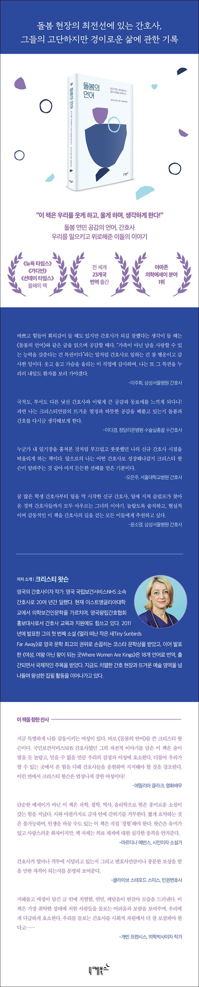 20³â°£ ¼ö¸¹Àº ȯÀÚ¸¦ µ¹º¸¸ç ½° ¾øÀÌ ´Þ·Á¿Â ÇÑ °£È£»çÀÇ Àڱ⠰í¹éÀÌÀÚ °£È£»ç·Î¼ ¸¶ÁÖÇÑ »î°ú Á×À½, µ¹º½¿¡ °üÇÑ ±â·ÏÀÌ´Ù. Ãâ°£ Áï½Ã ´º¿å ŸÀÓ½º, °¡µð¾ð, µ¥Àϸ® ÅÚ·¹±×·¡ÇÁ, ¾Æ¸¶Á¸ º£½ºÆ®¼¿·¯¿¡ ¿À¸£´õ´Ï 2021³â 4¿ù ÇöÀç±îÁö 3³â ³Ñ°Ô º£½ºÆ®¼¿·¯ ÃÖ»ó´ÜÀ» Áö۰í ÀÖ´Ù. -MDÃßõ-