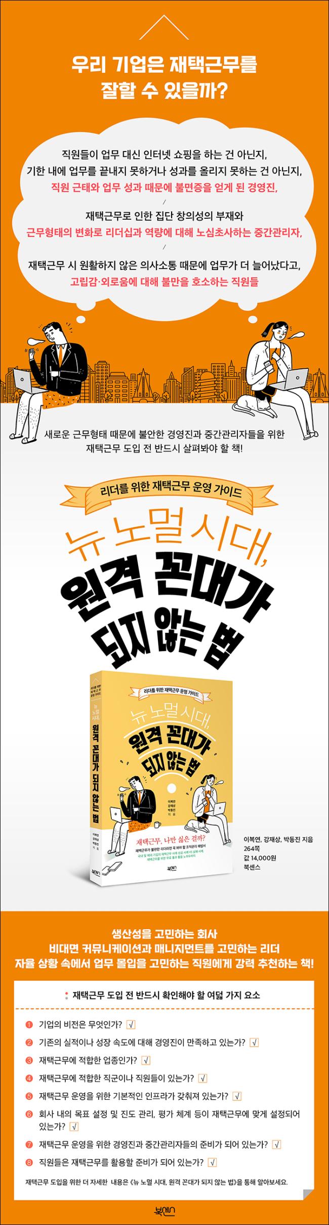 Äڷγª19·Î ÀÎÇØ ÀçÅñٹ«°¡ ÀÏ»óÀÌ µÇ¾ú´Ù. ¾î¿ ¼ö ¾øÀÌ ¹Ý °Á¦·Î(?) ÁøÇàµÈ ÀçÅñٹ«, ÃʱâÀÇ ³¸¼´°ú ´çȲ½º·¯¿ò, ¼³·½Àº µÚ·ÎÇϰí Â÷ºÐÇÏ°Ô »õ·Î¿î ´º ³ë¸Ö·Î Á¤Âø½ÃŰ´Â °úÁ¦°¡ ¿ì¸® ¾Õ¿¡ ³õ¿© ÀÖ´Ù. ¹Ù·Î ÀÌ ½ÃÁ¡¿¡¼ ÃÖ°í Àü¹®°¡µéÀÌ ÀçÅñٹ« È¿°ú¸¦ ±Ø´ëÈÇÒ ¼ö ÀÖ´Â ÀÏÁ¾ÀÇ ¹ÙÀ̺íÀ» ¸¸µé¾î Ã¥À¸·Î Æì³½ °ÍÀº ¸Å¿ì ÀÇ¹Ì ÀÖ´Â ÀÏÀ̶ó »ý°¢ÇÑ´Ù. »ý»ê¼ºÀ» °í¹ÎÇϴ ȸ»ç, ºñ´ë¸é Ä¿¹Â´ÏÄÉÀ̼ǰú ¸Å´ÏÁö¸ÕÆ®¸¦ °í¹ÎÇÏ´Â ¸®´õ, ÀÚÀ² »óȲ ¼Ó¿¡¼ ¾÷¹« ¸ôÀÔÀ» °ÆÁ¤ÇÏ´Â Á÷¿ø ¸ðµÎ¿¡°Ô °·ÂÈ÷ ÃßõÇÑ´Ù.