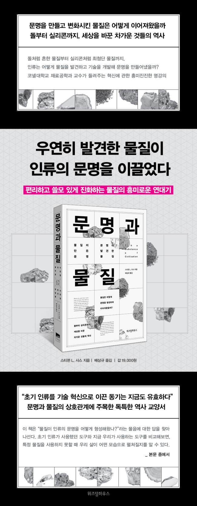 ÀúÀÚ´Â µ¹, Á¡Åä, ±¸¸®, ûµ¿°ú °°ÀÌ °í´ë¿¡ ¹ß°ßÇÑ ¹°ÁúºÎÅÍ ½Ã¸àÆ®, ½Ç¸®ÄÜ, Æú¸®¸Ó µî ºñ±³Àû Çö´ë¿¡ ¹ß°ßÇÑ ¹°Áú±îÁö, ¹®¸í°ú ¹°ÁúÀÌ ÇÔ²² ÁøÈÇØ¿Â ¹æ½ÄÀ» Çϳª¾¿ »ìÆìº»´Ù. °¢ ¹°ÁúÀº ³¢´Ï¸¦ ÇØ°áÇϰí, ¹«±â¸¦ ¸¸µé°í, °ÇÃ๰À» Áþ´Â ±âÃÊÀûÀÎ ¿ªÇÒÀ» ¶Ù¾î³Ñ¾î ÇÑ ±¹°¡ÀÇ Èï¸ÁÀ» Á¿ìÇÏ´Â ÇÑÆí, ÷´Ü ±â¼úÀÇ ÃÖÀü¼±¿¡¼ ¼¼»óÀ» ¹Ù²Ù´Â Áß¿äÇÑ Àç·á·Î ¾²¿©¿Ô´Ù. ÀÌ Ã¥¿¡¼ ¿ª»ç¿Í °úÇÐÀ» ÀÕ´Â Èï¹ÌÁøÁøÇÑ ¹°ÁúÀÇ ¿¬´ë±â¸¦ È®ÀÎÇÒ ¼ö ÀÖÀ» °ÍÀÌ´Ù.