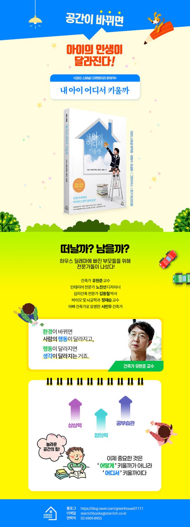 ¸¹Àº ºÎ¸ð¿¡°Ô ÈÁ¦°¡ µÇ¾ú´ø SBS ½ºÆä¼È <³» ¾ÆÀÌ ¾îµð¼ Ű¿ï±î>°¡ Ã¥À¸·Î Ãâ°£µÇ¾ú´Ù. ±×µ¿¾È ¹Ìó ¾ËÁö ¸øÇß´ø °ø°£ÀÇ Èû¿¡ ´ëÇØ Àü¹®°¡¿Í ºÎ¸ðµéÀ» ¸¸³ª À̾߱⸦ µé¾îº¸¸ç ¾Ë¾Æº¸°íÀÚ ÇÑ´Ù. ȯ°æÀÌ ¹Ù²ï´Ù°í ¾ÆÀ̰¡ Á¤¸»·Î ¹Ù²ð±î. ÇбºÁö¿¡¼ ¸Ö¾îÁö¸é ÀÚ¿¬½º·´°Ô ´ëÇеµ ¸Ö¾îÁö´Â °Í ¾Æ´Ò±î. ºÎ¸ð¶ó¸é ÇÑ ¹øÂë ÇØºÃÀ» °í¹ÎÀ» ¤¾îÁÖ¸ç ³» ¾ÆÀÌ¿¡°Ô ÇÊ¿äÇÑ °ø°£À» ã¾Æ ¶°³´Ù.