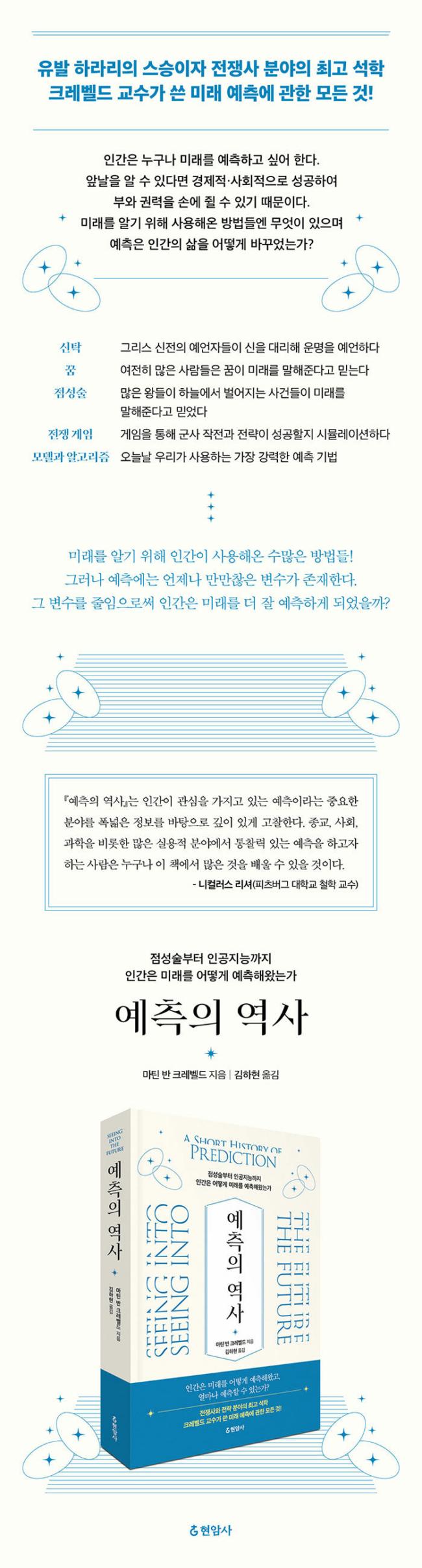 ¹Ý Å©·¹º§µå´Â ÀüÀï»ç¿Í Àü·«¿¡ ´ëÇÑ ÃÖ°í Àü¹®°¡·Î¼, ¹Ì·¡ ¿¹Ãø ±â¹ý¿¡ °ü½ÉÀ» ±â¿ï¿©¿Ô´Ù. ¿ì¸®´Â ¾ÕÀ¸·Î ¹ú¾îÁú ÀÏÀ» ¿¹»óÇÏ¿© ±×¿¡ ´ëºñÇÏ°í ¿©·¯ ¹æ¾ÈÀ» ¼¼¿î´Ù. °í´ëÀÇ ¿¹¾ð°ú Á¡¼º¼ú¿¡¼ ¿À´Ã³¯ÀÇ ¼öÇÐÀû ¾Ë°í¸®Áò¿¡ À̸£±â±îÁö, Àηù´Â ¹Ì·¡¸¦ ¿¹ÃøÇϱâ À§ÇØ ¼öõ ³â µ¿¾È ¼ö¸¹Àº ¹æ¹ýµéÀ» °í¾ÈÇØ¿Ô´Ù. ¡º¿¹ÃøÀÇ ¿ª»ç¡»´Â ÀÌ·± ¿¹Ãø ±â¹ýµéÀ» Çϳª¾¿ »ìÆìº¸´Â µ¥¼ ½ÃÀÛÇØ, ¿¹ÃøÀÌ ¿Ö ±×·¸°Ô ¾î·Á¿îÁö, Çö´ëÀÎÀÌ Á¶»óº¸´Ù ¿¹ÃøÀ» ´õ ÀßÇÏ´ÂÁö, ¹Ì·¡¸¦ ¾Æ´Â °ÍÀÌ °ú¿¬ ÁÁÀº °ÍÀÎÁö¿Í °°Àº Áú¹®¿¡ ´ëÇØ °íÂûÇÑ´Ù.