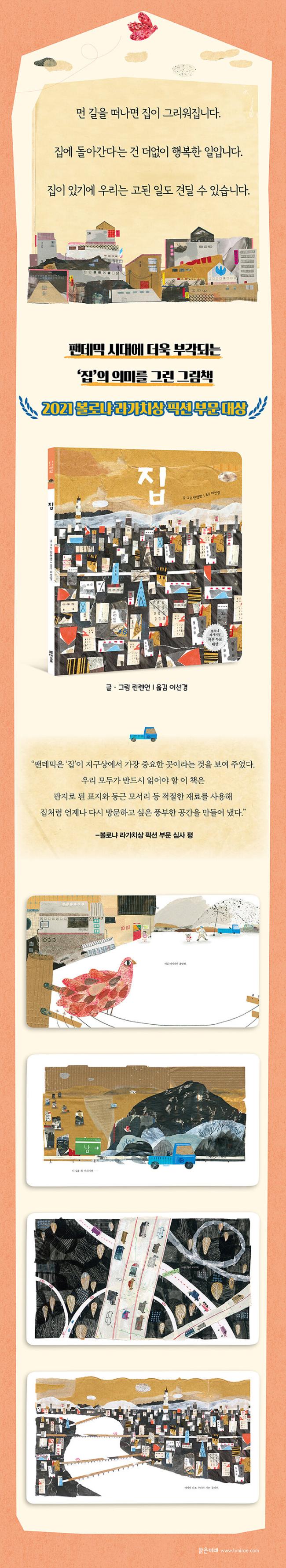 ÀúÀÚ : ¸°·Ë¾ð ´ë¸¸¿¡¼ ž°í ÀÚ¶ú´Ù. ´ëÇб³ Á¹¾÷ ÈÄ ÀÎÇü ¾Ö´Ï¸ÞÀÌ¼Ç Á¦ÀÛ È¸»ç¿¡¼ ÀÏÇß´Ù. ȸ»ç¸¦ ¶°³ µÚ¿¡¾ß ±×¸²À» ±×¸®±â ½ÃÀÛÇß°í ÁÖ·Î ¾ÆÅ©¸± ¹°°¨, ¼ö¼º Å©·¹¿ë, ÄݶóÁÖ ±â¹ýÀ» ÀÌ¿ëÇØ ÀÛ¾÷ÇÑ´Ù. ¼ø°£¼ø°£ ´À³¤ °Í°ú °æÇèÀ» âÀÛ ÁÖÁ¦·Î »ï°í, ¾Æµ¿ ÀÏ·¯½ºÆ®·¹À̼Ç, °¾ÆÁö¿Í °í¾çÀÌ, ¿¹½º·¯¿î °Í, ¿ÀÈÄÀÇ ¼Ò³ª±â, µå¶ó¸¶ ½ÃûÀ» ÁÁ¾ÆÇÑ´Ù. 2014³â¿¡ 3X3 ¸Å°ÅÁø ±¹Á¦ ÀÏ·¯½ºÆ®·¹ÀÌ¼Ç ¼î¿¡¼ ¼ö»óÇß°í 2015³â°ú 2018³â¿¡ º¼·Î³Ä ¶ó°¡Ä¡»ó Èĺ¸¿¡ ¿Ã¶úÀ¸¸ç ÀÌ Ã¥ ¡¶Áý¡·À¸·Î 2021 º¼·Î³Ä ¶ó°¡Ä¡»ó ÇÈ¼Ç ºÎ¹® ´ë»óÀ» ¼ö»óÇß´Ù. Æò¼Ò¿¡´Â ¸»¼ö°¡ ÀûÀº Â÷ºÐÇÑ ÀÏ·¯½ºÆ®·¹ÀÌÅÍÁö¸¸ Àú³á°ú ÈÞÀÏÀÌ µÇ¸é ¾ÆÀÌ ¶§¹®¿¡ Á¤½Å¾ø´Â ¾ö¸¶°¡ µÈ´Ù. ¿ªÀÚ : À̼±°æ ¼°´ëÇб³¿¡¼ ½Å¹® ¹æ¼ÛÇаú ½É¸®ÇÐÀ» °øºÎÇß°í ÀÌÈ¿©ÀÚ´ëÇб³¿¡¼ Áß±¹¾î ¹ø¿ªÀ¸·Î ¼®»ç ÇÐÀ§¸¦ ¹Þ¾Ò´Ù. ±Û°ú ±×¸²ÀÌ °áÇյǾî À̾߱⸦ Àü´ÞÇÏ´Â Èû¿¡ ¸Å·áµÇ¾î ±×¸²Ã¥°ú ¸¸È ¹ø¿ª¿¡ ÀÔ¹®Çß´Ù. ±¹³» ÄÜÅÙÃ÷°¡ ÇØ¿Ü¿¡ ´õ ¸¹ÀÌ ¾Ë·ÁÁú ¼ö ÀÖµµ·Ï ÇöÀç Ȱ¹ßÇÏ°Ô ±âȹ°ú ¹ø¿ª Ȱµ¿À» Çϰí ÀÖÀ¸¸ç ÀÌ Ã¥ ¡¶Áý¡·À» ±¹³» µ¶Àڵ鿡°Ô ¼Ò°³ÇÏ°Ô µÇ¾î ±â»Ú´Ù.