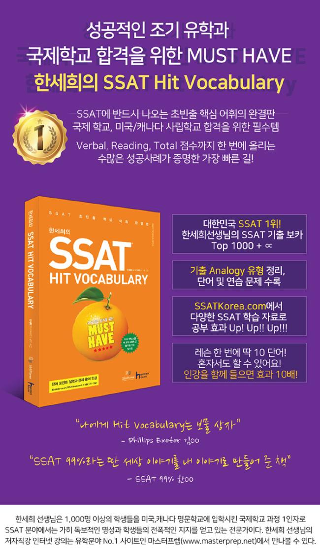 ÇѼ¼ÈñÀÇ SSAT HIT VOCABULARY ÇѼ¼Èñ Àú | HERMON | 2020³â 06¿ù [ÀýÆÇ]