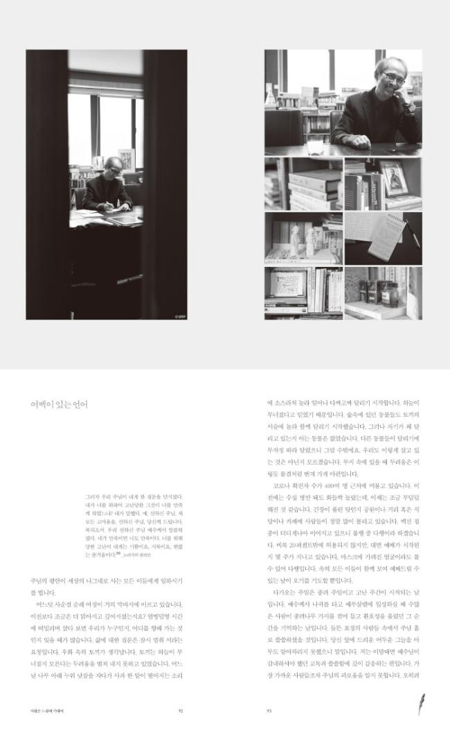 µüµüÇÏ°í ±³¸®ÀûÀÎ »ê¹®ÀÇ ¾ð¾î°¡ ¾Æ´Ï¶ó ¡°¿òÁ÷À̸ç Àû½Ã¿¡ µµ¾àÇÏ´Â ¾ð¾î, ±â½À°ú ¸¶Âû·Î ³°Àº ¼¼°è¸¦ ±ú¶ß·Á ¿©´Â¡± ½ÃÀû ¾ð¾î·Î ¿ì¸® »î°ú ¿ª»çÀÇ À̸鿡¼ Áö¼ÓµÇ°í ÀÖ´Â ±¸¿øÀÇ À̾߱⸦ µé·ÁÁÖ´Â ¼³±³°¡. ½Ã¿Í »ê¹®, Çö´ë¹®Çаú µ¿¼°íÀüÀ» ÀÚÀ¯·ÎÀÌ ³Ñ³ªµå´Â ÁøÁöÇÑ ±Û¾²±â¿Í »©¾î³ ¹®Àå·ÂÀ¸·Î ½Å¾ÓÀÇ »õ·Î¿î ÃþµéÀ» ¿¾î º¸ÀÌµÇ È·ÁÇÑ ¹®ÇÐÀû ¼ö»ç¿¡ ¸Ó¹°Áö ¾Ê°í ÁúÆÝÇÑ »îÀÇ Çö½Ç¿¡ ´Ü´ÜÇÏ°Ô ¹ßÀ» µó°í ¼ ÀÖ´Ù. ±×·¡¼ ±×ÀÇ ±Û°ú ¼³±³¿¡´Â ¡®ÇÑ ½Ã´ëÀÇ ¿Âµµ°è¡¯¶ó ÇÒ ¼ö ÀÖ´Â °¡³ÇÑ »ç¶÷µé, ¼Ò¿ÜµÈ »ç¶÷µé, ¾ÆÇ »ç¶÷µé¿¡ ´ëÇÑ µûµíÇÑ ½Ã¼±°ú Çϳª´ÔÀÌ Ã¢Á¶ÇÑ ÇÇÁ¶¼¼°èÀÇ Ç¥¸éÀÌ ¾Æ´Ñ À̸é, ±× ³Ê¸Ó¸¦ ²ç¶Õ¾î º¸´Â ÅëÂû·ÂÀÌ ¹øµæÀδÙ.
