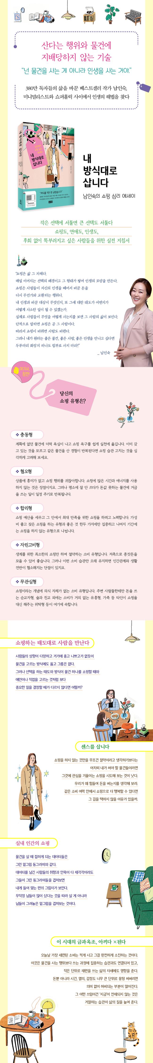 Çѱ¹°ú Áß±¹À» ÇÕÇØ 380¸¸ ºÎ ÀÌ»ó ÆÇ¸ÅµÈ º£½ºÆ®¼¿·¯ ¡º¿©ÀÚÀÇ ¸ðµç ÀλýÀº 20´ë¿¡ °áÁ¤µÈ´Ù¡»¸¦ ÅëÇØ ¡®¿©ÀÚµéÀÇ ¸àÅ䡯·Î »ç¶û¹Þ¾Æ ¿Â ÀÛ°¡°¡ ¼îÇÎ ½É¸®¿¡ ´ëÇÑ »õ·Î¿î ½Ã°¢À» Á¦½ÃÇÑ´Ù. ÀúÀÚ´Â ¼îÇÎÇϴ ŵµ°¡ »îÀ» ´ëÇÏ´Â ÀÚ¼¼¿Í ´Ù¸£Áö ¾ÊÀ¸¸ç ´ç½ÅÀÌ »ç´Â °ÍÀÌ ´ç½ÅÀ» ¸»ÇØÁØ´Ù°í ¸»ÇÑ´Ù. ÀÌ Ã¥¿¡´Â ÀڽŸ¸ÀÇ ¼îÇΠöÇÐÀ» ÅëÇØ ½º½º·Î »îÀ» Àå¾ÇÇÏ°í º¯È½ÃÄÑ ³ª°¥ ÁöÇý¿Í ³ëÇϿ찡 ´ã°Ü ÀÖ´Ù.