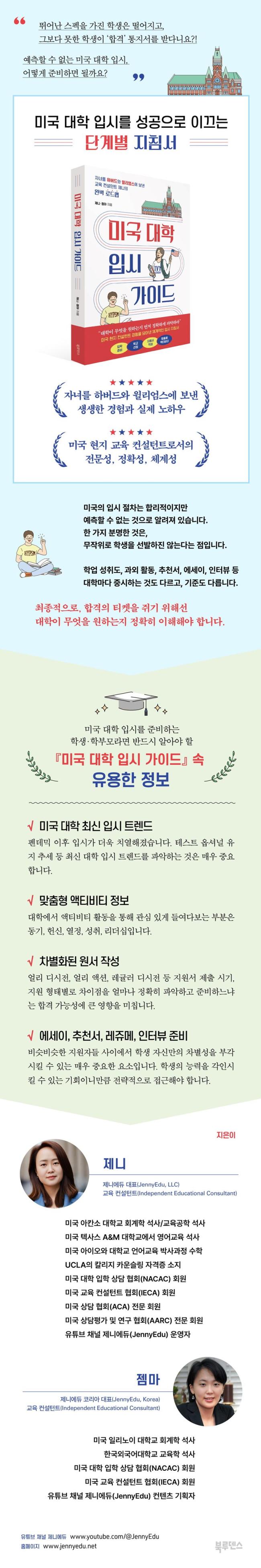 ÀúÀÚ : Á¦´Ï\t Á¦´Ï¿¡µà ´ëÇ¥(JennyEdu, LLC) ±³À° ÄÁ¼³ÅÏÆ®(Independent Educational Consultant) Çѱ¹¿Ü±¹¾î´ëÇб³¸¦ Á¹¾÷Çϰí, ¹Ì±¹ ¾ÆÄ¼Ò ´ëÇб³¿¡¼ ȸ°èÇÐ ¼®»ç ÇÐÀ§¿Í ±³À°°øÇÐ ¼®»ç ÇÐÀ§¸¦, ÅØ»ç½º A&M ´ëÇб³¿¡¼ ¿µ¾î±³À° ¼®»ç ÇÐÀ§¸¦ ¹Þ¾Ò´Ù. ¾ÆÀÌ¿À¿Í ´ëÇб³ÀÇ ¹Ú»ç °úÁ¤¿¡¼ ¾ð¾î±³À°À» ¿¬±¸Çß´Ù. UCLAÀÇ Ä®¸®Áö Ä«¿î½½¸µ ÀÚ°ÝÁõÀ» °®°í ÀÖ´Ù. ¹Ì±¹ ´ëÇÐ ÀÔÇÐ »ó´ã Çùȸ(National Association for College Admission Counseling, NACAC), ¹Ì±¹ ±³À° ÄÁ¼³ÅÏÆ® Çùȸ(Independent Educational Consultants Association, IECA)ÀÇ È¸¿øÀÌÀÚ, ¹Ì±¹ »ó´ã Çùȸ(American Counseling Association, ACA), ¹Ì±¹ »ó´ãÆò°¡ ¹× ¿¬±¸ Çùȸ(Association for Assessment and Research in Counseling, AARC)ÀÇ Àü¹® ȸ¿ø(Professional Member)ÀÌ´Ù. Àڳฦ ÇϹöµå ´ëÇб³¿Í Àª¸®¾ö½º ´ëÇб³¿¡ º¸³½ °æÇèÀ» »ì·Á ±³À° ÄÁ¼³ÅÏÆ®·Î¼ÀÇ ±æÀ» °È±â ½ÃÀÛÇß´Ù. À¯Æ©ºê ä³Î ¡®Á¦´Ï¿¡µà¡¯ÀÇ ¿î¿µÀÚ·Î, À¯Æ©ºê¸¦ ÅëÇØ ¹Ì±¹ ´ëÇÐ ÁøÇп¡ °üÇÑ ±¸Ã¼ÀûÀ̰í À¯¿ëÇÑ Á¤º¸¸¦ ³ª´©´Â ÁßÀÌ´Ù. ÀúÀÚ : Áª¸¶\t Á¦´Ï¿¡µà ÄÚ¸®¾Æ ´ëÇ¥(JennyEdu, Korea) ±³À° ÄÁ¼³ÅÏÆ®(Independent Educational Consultant) ÀÌÈ¿©ÀÚ´ëÇб³¸¦ Á¹¾÷ÇßÀ¸¸ç, ¹Ì±¹ Àϸ®³ëÀÌ ´ëÇб³¿¡¼ ȸ°èÇÐ ¼®»ç ÇÐÀ§¸¦, Çѱ¹¿Ü±¹¾î´ëÇб³¿¡¼ ±³À°ÇÐ ¼®»ç ÇÐÀ§¸¦ ¹Þ¾Ò´Ù. ÇöÀç ¹Ì±¹ ´ëÇÐ ÀÔÇÐ »ó´ã Çùȸ(National Association for College Admission Counseling, NACAC), ¹Ì±¹ ±³À° ÄÁ¼³ÅÏÆ® Çùȸ(Independent Educational Consultants Association, IECA)ÀÇ È¸¿øÀ̸ç, UCLAÀÇ Ä®¸®Áö Ä«¿î½½¸µ ÀÚ°ÝÁõ °úÁ¤À» ¹â´Â ÁßÀÌ´Ù. À¯Æ©ºê ä³Î Á¦´Ï¿¡µà(JennyEdu)ÀÇ ÄÁÅÙÃ÷ ±âȹÀڷΠȰµ¿Çϰí ÀÖ´Ù.