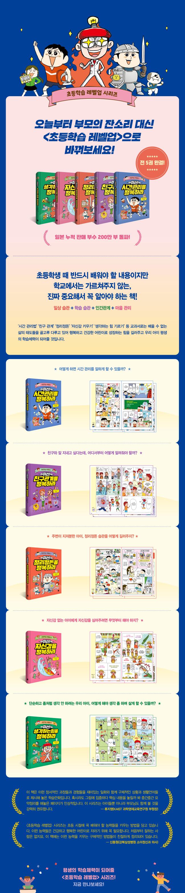 <ÃʵîÇнÀ ·¹º§¾÷> ½Ã¸®Áî´Â ½Ã°£ °ü¸®, Àΰ£°ü°è, Á¤¸®Á¤µ·, Àڽۨ, »ç°í·Â µî ÃʵîÇлý ¶§ ²À ¹è¿ö¾ß ÇÏ´Â °ÍµéÀ» À¯ÄèÇÑ Çü½ÄÀ¸·Î ¾Ë·ÁÁÖ´Â ÇнÀ¸¸È ½Ã¸®Áî´Ù. ÀϺ»¿¡¼´Â <Çб³¿¡¼ °¡¸£ÃÄÁÖÁö ¾Ê´Â Áß¿äÇÑ °Í> ½Ã¸®Áî·Î Àß ¾Ë ·ÁÁ® ÀÖÀ¸¸ç, 2015³â Á¦1ÆíÀÌ Ãâ°£µÇ¸é¼ ÇöÀç 30¿© ±ÇÀÌ 200¸¸ ºÎ ³Ñ°Ô ÆÇ¸ÅµÇ´Â µî Å« Àα⸦ ´©¸®°í ÀÖ´Ù.