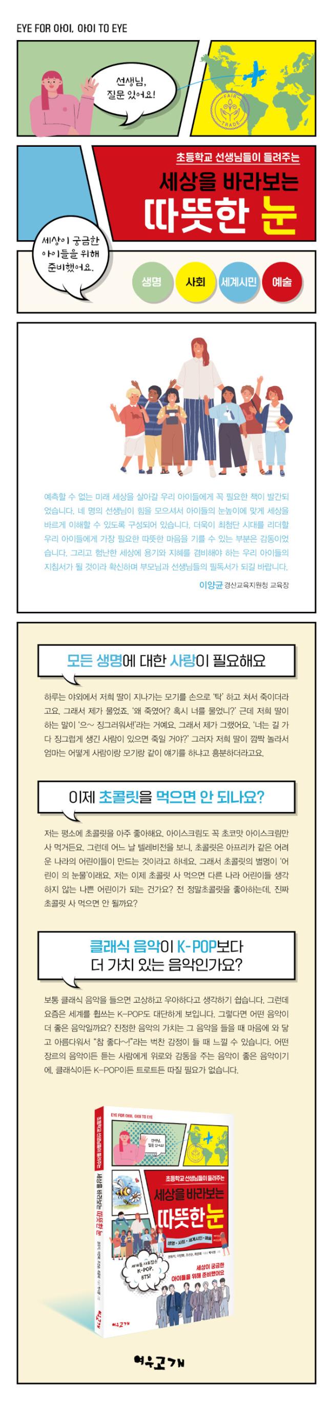 ¾î¸°À̵éÀÌ °¡Áø »ó»ó·Â°ú âÀÇ·ÂÀº ¹«±Ã¹«ÁøÇϱ⿡ ¼¼»óÀ» ÇâÇÑ ±Ã±ÝÁõµµ ´Ù¾çÇÏ´Ù°í »ý°¢ÇÕ´Ï´Ù. ¹«ÇÑÇÑ ÀáÀç·ÂÀ» Áö´Ñ ¾î¸°À̵é°ú ÇÔ²² °æ»óºÏµµ¿¡ ÀÖ´Â ÃʵîÇб³¿¡¼ Áñ°Ì°Ô »ýȰÇϰí ÀÖ´Â ±³»çÀÔ´Ï´Ù. ¾î¸°À̵éÀÇ ±Ã±ÝÁõÀ» ÇØ°áÇÏ´Â µ¥ º¸ÅÆÀÌ µÇ°íÀÚ ±â»Û ¸¶À½À¸·Î Ã¥ ¾²±â¿¡ Âü¿©Çß½À´Ï´Ù. ÀÌ Ã¥ÀÌ ¿Ã¹Ù¸¥ °¡Ä¡°üÀ» ¼¼¿ì°í, ±í°í ³ÐÀº ´«À¸·Î ¼¼»óÀ» ¹Ù¶óº¼ ¼ö ÀÖ´Â µû¶æÇÑ ¸¶À½À» °¡Áö´Â µ¥ ÀÛÀº µµ¿òÀÌ µÇ±æ ¹Ù¶ø´Ï´Ù