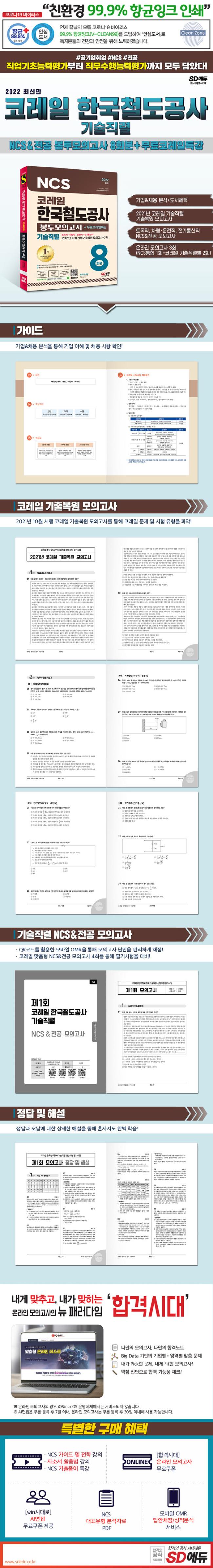 °ø»ç¡¤°ø´Ü Çʱâ½ÃÇè ÇÕ°ÝÀ» À§ÇØ (ÁÖ)½Ã´ë°í½Ã±âȹ¿¡¼­´Â 2022³â ä¿ëÀ» ´ëºñÇÏ¿© ÄÚ·¹ÀÏ ¸ÂÃãÇü ¹®Á¦·Î ±¸¼ºÇÑ ¡º2022 ÃÖ½ÅÆÇ ÄÚ·¹ÀÏ Çѱ¹Ã¶µµ°ø»ç ±â¼úÁ÷·Ä NCS&Àü°ø ºÀÅõ¸ðÀǰí»ç 8ȸºÐ+¹«·áÄÚ·¹ÀÏÆ¯°­¡»À» Ãâ°£ÇÏ¿´´Ù. »ó¼¼ÇÑ ÇØ¼³·Î È¥ÀÚ¼­µµ ÇнÀÀÌ °¡´ÉÇϵµ·Ï ÇÏ¿´À¸¸ç, NCSÅëÇÕ°ú ÄÚ·¹ÀÏ ±â¼úÁ÷·Ä ¸ðÀǰí»ç¸¦ ¹«·á·Î ÀÀ½ÃÇÒ ¼ö ÀÖ´Â ¿Â¶óÀÎ ¸ðÀǰí»ç ÄíÆùÀ» ¹ß±ÞÇÏ¿© ÄÚ·¹ÀÏ ¹®Á¦ À¯Çü¿¡ ´ëÇÑ ¿¬½À°ú ÇÔ²² ÀÚ½ÅÀÇ ½Ç·ÂÀ» ÃÖÁ¾Á¡°ËÇÒ ¼ö ÀÖµµ·Ï ÇÏ¿´´Ù.