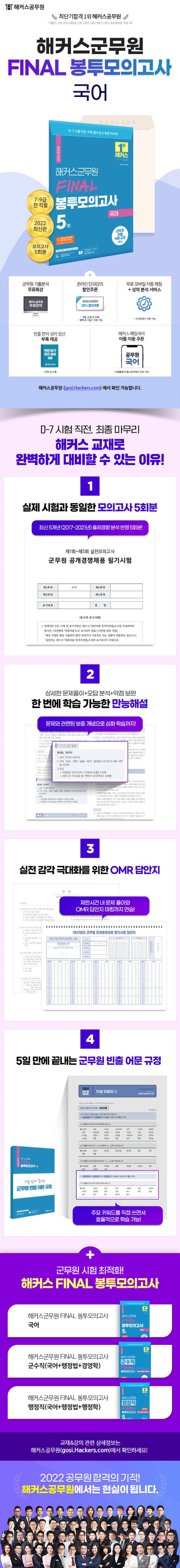 1) ÃÖ±Ù 5°³³â(2021~2017³â) ±º¹«¿ø ±¹¾î ½ÃÇèÀÇ ÃâÁ¦°æÇâÀ» öÀúÇÏ°Ô ºÐ¼®ÇÏ¿© ¸ðµç ¸ðÀǰí»ç ¹®Á¦¿¡ ¹Ý¿µÇÏ¿´½À´Ï´Ù.