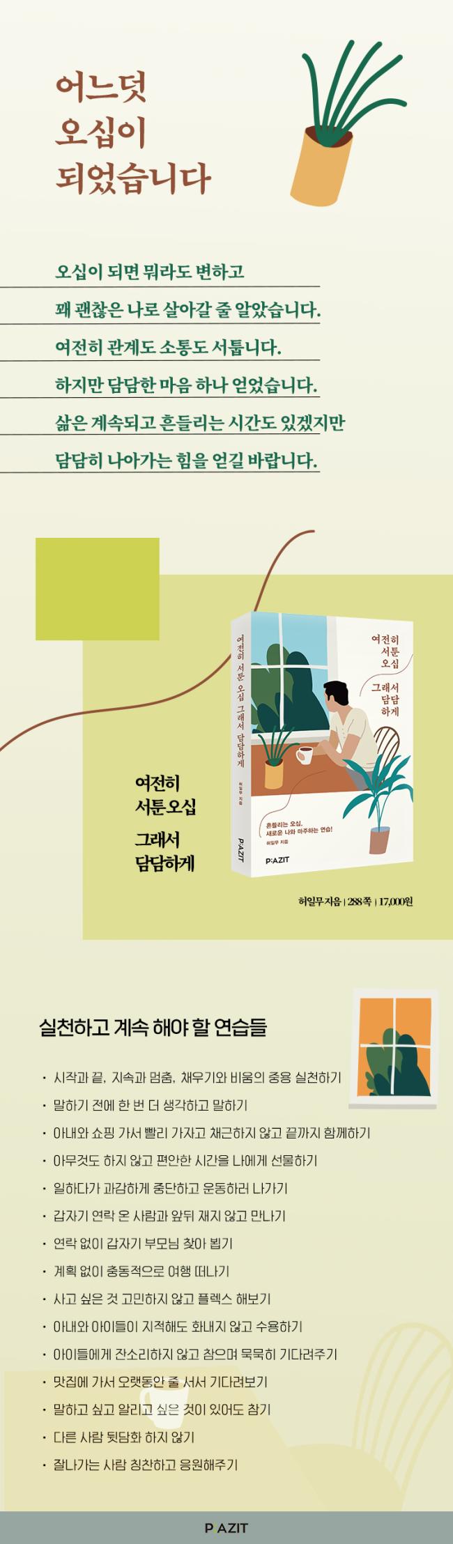 ±×µ¿¾È ±Û°ú °¿¬ÀÇ ¹«°Ô Áß½ÉÀÌ Àڽź¸´Ù´Â ŸÀο¡°Ô ÀÖ¾ú´Ù. ÇÏÁö¸¸ ¿©ÀüÈ÷ ¼Åõ¸£°í ºÎÁ·ÇÏ°í ºÒ¾ÈÇÑ ¿À½ÊÀÇ ÀڽŰú ¸¶ÁÖÇÏ¸é¼ ÇöŸ°¡ ¿Ô°í, ÀÚ½ÅÀ»µ¹¾Æº¸´Â ½Ã°£À» °¡Á³´Ù. Àλý ÈĹݺÎ, ´õ ±¦Âú°í Æí¾ÈÇϰí ÇູÇÑ ÀÚ½ÅÀ» ¸¸³ª±â À§ÇØ È¸°í¿Í º¯ÈÇÏ´Â °úÁ¤À» ±Û·Î ½è´Ù. ¿©ÀüÈ÷ Èçµé¸®°í ¼Åõ¸¥ ¿À½Ê´ëµéÀÌ ´ã´ãÇÏ°Ô ÀÚ½ÅÀ» ¹Ù¶óº¸¸ç Á¶±Ý¾¿ ÇູÇÑ Àڱ⸦ ¸¸³ª´Â µ¥ ÀÌ Ã¥ÀÌ µµ¿òÀÌ µÇ±â¸¦ ¹Ù¶õ´Ù.