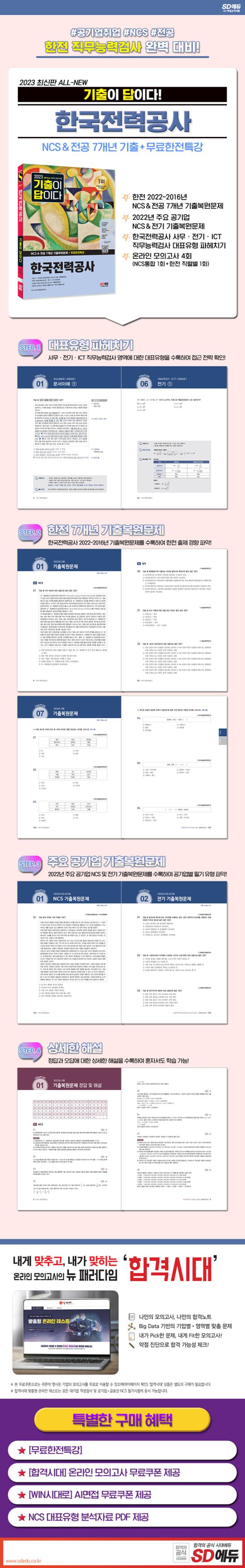 Çѱ¹Àü·Â°ø»ç Çʱâ½ÃÇè ÇÕ°ÝÀ» À§ÇØ SD¿¡µà¿¡¼­´Â 2023³â »ó¹Ý±â ä¿ëÀ» ´ëºñÇÏ¿© Çѱ¹Àü·Â°ø»ç ÃֽŠÇʱâÀüÇü ¸ÂÃãÇü ¹®Á¦·Î ±¸¼ºÇÑ ¡º2023 ÃÖ½ÅÆÇ All-New ±âÃâÀÌ ´äÀÌ´Ù! Çѱ¹Àü·Â°ø»ç(ÇÑÀü) NCS&Àü°ø 7°³³â ±âÃâ+¹«·áÇÑÀüƯ°­¡»À» Ãâ°£ÇÏ¿´´Ù. »ó¼¼ÇÑ ÇØ¼³·Î È¥ÀÚ¼­µµ ÇнÀÀÌ °¡´ÉÇϵµ·Ï ÇÏ¿´À¸¸ç, ¿Â¶óÀÎ ¸ðÀǰí»ç¸¦ ¹«·á·Î ÀÀ½ÃÇÒ ¼ö ÀÖ´Â ÄíÆùÀ» Á¦°øÇÏ¿© Çѱ¹Àü·Â°ø»ç ¹®Á¦ À¯Çü¿¡ ´ëÇÑ ¿¬½À°ú ÇÔ²² ÀÚ½ÅÀÇ ½Ç·ÂÀ» ÃÖÁ¾ Á¡°ËÇÒ ¼ö ÀÖµµ·Ï ÇÏ¿´´Ù.