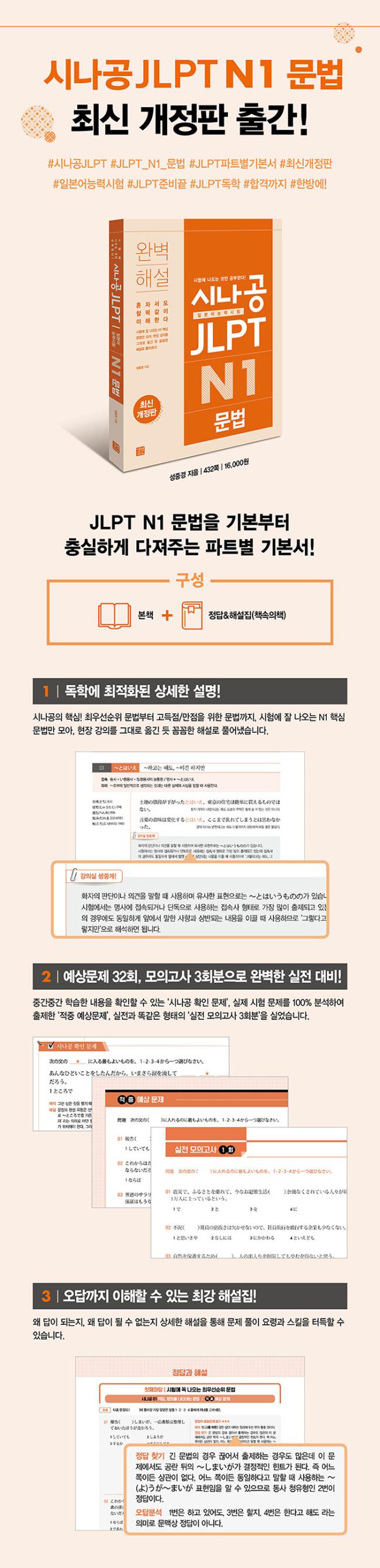 ±×·¡¼ ÇÊÀÚ°¡ ÇöÀå¿¡¼ °ÀÇÇÑ °æÇèÀ» Åä´ë·Î È¥ÀÚ¼µµ ½±°Ô ¹®¹ýÀ» ÀÌÇØÇϰí È¿°úÀûÀ¸·Î ½ÃÇè¿¡ ´ëóÇÒ ¼ö ÀÖµµ·Ï ÀÚ¼¼ÇÑ ¼³¸í°ú Ç®ÀÌ ¹æ¹ýÀ» Á¤¸®ÇÑ N1 ¹®¹ý ±³À縦 ÁýÇÊÇÏ°Ô µÇ¾ú´Ù.