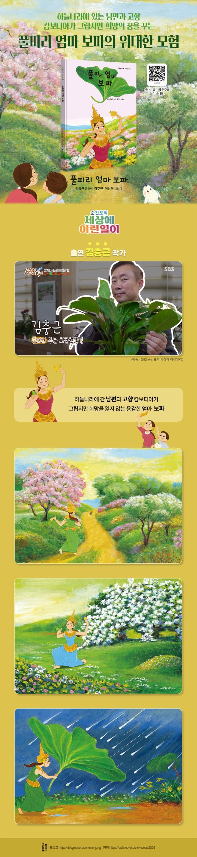 ÀÌ Ã¥¿¡ ±ÛÀ» ¾´ ±èÃæ±Ù ÀÛ°¡´Â ¼Ò³â ½ÃÀýºÎÅÍ ÀÚ¿¬¿¡¼­ ¶Ù³î¸ç Ç®ÇǸ®¿Í ¹®Çаú ¿¹¼úÀ» ÁÁ¾ÆÇß´Ù. ±×´Â ÇöÀç °æ±âµµÀÇ ÇÑ ÃʵîÇб³ ±³ÀåÀÌÀÚ Çѱ¹Ç®ÇǸ®Çùȸ ºÎȸÀåÀ̱⵵ ÇÏ´Ù. ±×´Â ¾ÆÀ̵éÀ» »ç¶ûÇÑ ¸¸Å­ Ç®ÇǸ® »ç¶û¿¡µµ ³¡ÀÌ ¾ø´Ù. »ç´Ü¹ýÀÎ Çѱ¹Ç®ÇǸ®Çùȸ¿¡¼­µµ ¸Å³â Á¤±â ¿¬ÁÖȸ¿Í ¹®È­ °ø¿¬À» ÇÏ°í ¼¼°èÇ®ÇǸ®ÃàÁ¦, °¢ Áö¿ª ¹®È­Á¦ Çà»ç¿¡¼­ Ç®ÇǸ® üÇè ºÎ½º µîÀ» ¿î¿µÇϸç Ç®ÇǸ® ´ëÁßÈ­¿Í ¼¼°èÈ­¸¦ À§ÇØ ¾Ö¾²°í ÀÖ´Ù. ÀÛ°¡´Â ¿©ÇàÀ» ¾ÆÁÖ ÁÁ¾ÆÇؼ­ ¿ì¸®³ª¶ó Àü±¹ Ã¥¹æÀ» ¼ø·ÊÇϸç Ç®ÇǸ® ºÏÄܼ­Æ®¸¦ ÇÏ°í ½Í´Ù´Â ²ÞÀ» °¡Áö°í ÀÖ´Ù. ¶ÇÇÑ ¾Ç±â º¸±ÞÀ̳ª À½¾Ç Áöµµ °­»ç°¡ ¿­¾ÇÇÑ ¼¼°è ¿©·¯ ³ª¶ó ¾ÆÀ̵鿡°Ô Ç®ÇǸ®¸¦ ¾Ë·Á ÁÖ°íµµ ½Í´Ù°í ÇÑ´Ù. ½º¸¶Æ®ÆùÀ̳ª ÀÎÅÍ³Ý °ÔÀÓ µî¿¡ ¸¹ÀÌ ³ëÃâµÈ ¾ÆÀ̵éÇÑÅ״ Ǫ¸¥ ÀÚ¿¬ÀÇ ÀÙµéÀÌ ¾Ç±â¿Í ³îÀÕ°¨ÀÌ µÉ °ÍÀÌ´Ù. ÀÛ°¡´Â ÀÌ ±×¸²Ã¥ ½Ã¸®Á ÅëÇØ Ç®ÇǸ®¿¡ ¾ôÈù »õ·Î¿î °¨µ¿ ½ºÅ丮¸¦ âÀÛÇϰí ÀÚ¿¬ ģȭÀûÀ̸ç Àΰ£ÀÇ ±Ùº»ÀûÀÎ °¡Ä¡µé, °¡Á· »ç¶û°ú ¹è·Á, »ý¸íÀÇ ¼ÒÁßÇÔ µîÀ» ±ú´Ý°Ô ÇØÁÙ °ÍÀÌ´Ù.