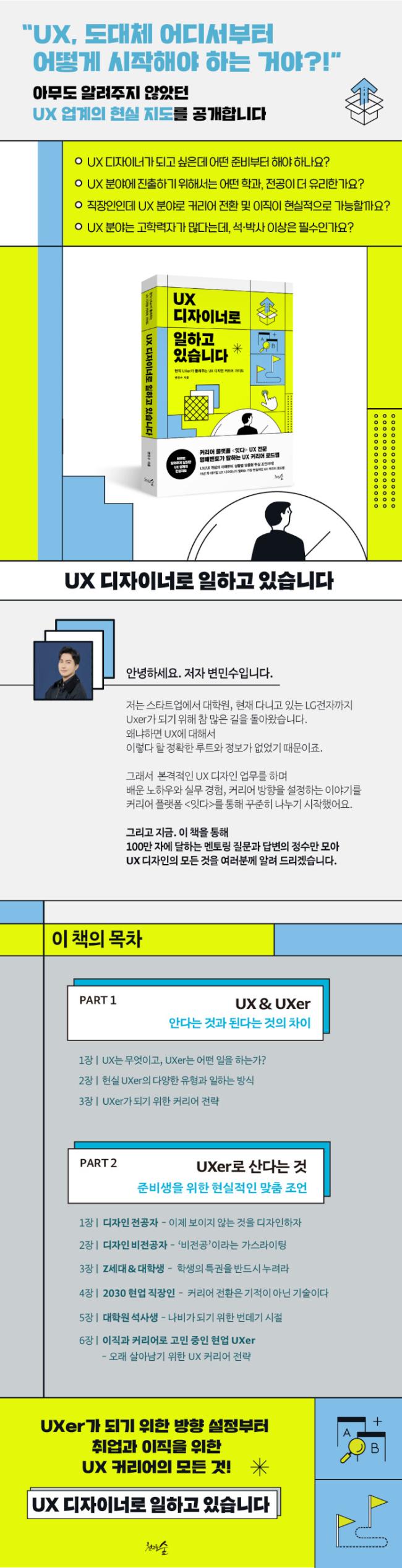 ÇöÀç LGÀüÀÚ¿¡¼ UX ´ã´çÀÚ·Î ±Ù¹«Çϸç, ½º¸¶Æ®Æù, Æú´õÆù, ÅÂºí¸´, ½º¸¶Æ®¿öÄ¡, ¿þ¾î·¯ºí µð¹ÙÀ̽º, ÀÚµ¿Â÷ ÀÎÆ÷Å×ÀÎ¸ÕÆ® ½Ã½ºÅÛ, ¸ÞŸ¹ö½º±îÁö ´Ù¾çÇÑ µµ¸ÞÀο¡¼ UX ½Ç¹«¸¦ °æÇèÇß´Ù. ÀÌ ¸ðµç °æÇèÀ» ÀÚ¾çºÐÀ¸·Î Ä¿¸®¾î Ç÷§Æû <ÀÕ´Ù>¿¡¼ Áö±Ýµµ ²ÙÁØÈ÷ UX ¸í¿¹¸àÅä·Î Ȱµ¿Çϰí ÀÖ´Ù.