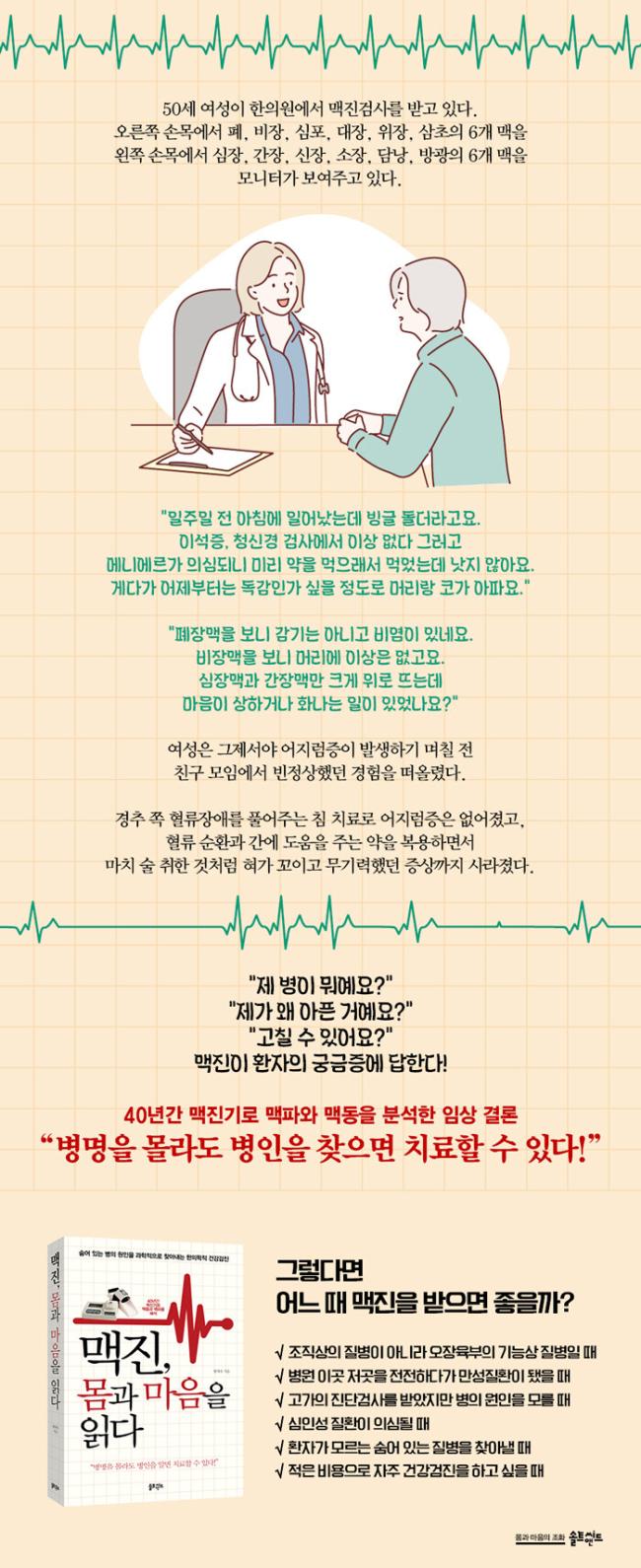 ¸öÆí¾ÈÇÑÀÇ¿ø ¿øÀå, À̳»Ç³ ´ëÇ¥ ¿øÀå. °íµîÇлýÀÏ ¶§ À§Àå õ°øÀ» Áø´Ü¹Þ¾Ò´ø °æÇèÀ» °è±â·Î ÇÑÀÇÇп¡ ÀÔ¹®Çß´Ù. ÇÑÀÇ´ë»ýÀ̾úÀ» ¶§, ¸ÆÁø±â¸¦ ¹ß¸íÇÑ ¹éÈñ¼ö ¼±»ý´ÔÀ» ¸¸³ª ¸ÆÁøÀÇ ¿ø¸®¸¦ ±ú¿ìÃÆ´Ù. ¹éÈñ¼ö ¼±»ý´ÔÀÌ µ¹¾Æ°¡½Å ÈÄ¿¡´Â ±âÁ¸ÀÇ ¸ÆÁø±â¸¦ µðÁöÅÐÈÇÑ ½É¾È¸ÆÁø±â¸¦ °³¹ßÇØ 40³â °¡±îÀÌ ÀÓ»ó µ¥ÀÌÅ͸¦ ½×¾Ò´Ù. ¡°¿ä»õ ÇÑÀÇ¿ø¿¡¼ ¿Ö Áø¸ÆÀ» ¾È ºÁÁà¿ä?¡±¶ó´Â Áú¹®À» ȯÀڵ鿡°Ô ¸¹ÀÌ ¹Þ°í Àִµ¥, ¼ÕÀ¸·Î ¤¾î³»´Â ¸ÆÀº ÇÑÀÇ»ç °³ÀÎÀÇ ¼÷·Ãµµ¿¡ µû¶ó Å©°Ô ´Þ¶óÁú ¼ö ÀÖ´Ù´Â Á¡À» »ý°¢Çϸé ÇÑÀÇÇÐÀÇ °úÇÐÈ, Çö´ëÈ´Â ÀλýÀÇ ¼÷Á¦¿Íµµ °°Àº ÀÏÀÌ µÇ¾ú´Ù. Çö´ëÀεéÀº °ú°Å¿¡ ºñÇÏ¸é °¨°¢ÀÇ ÈûÀÌ ÇöÀúÇÏ°Ô ¶³¾îÁö´Âµ¥, ÀÌ Á¡Àº ÀÇ»çµç ÇÑÀÇ»çµç ¸ðµÎ ÇØ´çÇÏ´Â ºÎºÐÀÌ´Ù. ¼ÕÀ¸·Î ¤´Â ¸ÆÀ» ´ë½ÅÇØ, ¸ÆÁø±â¸¦ ÅëÇØ ¸Æµ¿°ú ¸ÆÆÄ¸¦ ÃßÃâÇØ³»¸é ÇÑÀÇ»ç¿Í ȯÀÚ°¡ ÇÔ²² º¼ ¼ö ÀÖ´Â °¡½ÃÀûÀÎ µ¥ÀÌÅͰ¡ È®º¸µÇ±â ¶§¹®¿¡ Áø´Ü°ú Ä¡·á´Â ÈξÀ ´õ Á¤È®ÇØÁø´Ù. ¾Æ¹«¸® ÈǸ¢ÇÑ Ä¡·á¹ýÀÌ À־ Áø´ÜÀÌ Á¤È®ÇÏÁö ¾ÊÀ¸¸é ¼Ò¿ë¾ø´Â ¹ýÀÌ´Ù. Ÿ°í³ º»ÀÎÀÇ ¸ö¼Ó »óȲ°ú Áúº´ÀÌ ¹ß»ýÇÑ Áö±Ý ÀÌ ¼ø°£ÀÇ ¸ö¼Ó »óȲÀ» Á¤È®È÷ ¸ð¸£¸é ÇÑÀÇÇÐÀÇ Æ¯¼ºÀÎ °³ÀÎ ¸ÂÃã Áø·áµµ Á¤È®µµ°¡ ¶³¾îÁú °ÍÀÌ´Ù.
