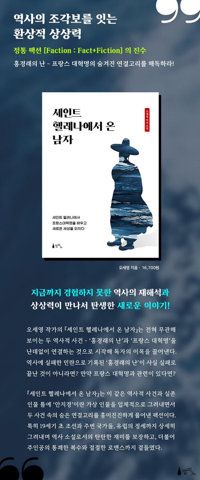 1954³â ÃæÃ»³²µµ È«¼º¿¡¼ žÀ¸¸ç, °æÈñ´ëÇб³¿¡¼ ¿ª»ç¸¦ Àü°øÇß´Ù. Èð¾îÁø ±â·ÏÀ» ¸ðÀ¸°í »ó»ó·ÂÀ» µ¿¿øÇؼ »ç¼ÀÇ Çà°£À» ä¿ì´Â ÀÏÀ» Áñ°å´ø ¿À¼¼¿µ¿¡°Ô ¿ª»ç¸¦ À̾߱â·Î ²Ù¹Ì´Â ¿ª»ç ÀÛ°¡´Â Àß ¾î¿ï¸®´Â Á÷¾÷ÀÎ ¼ÀÀÌ´Ù. ¿À¼¼¿µ¿¡°Ô ¿ª»ç´Â ³»ÀÏÀ» º¸¿©ÁÖ´Â °Å¿ïÀ̸ç, ¼Ò¼³Àº ¿ª»ç¸¦ ½±°Ô Ç®¾î¾²´Âµ¥ ¸Å¿ì À¯¿ëÇÑ ¼ö´ÜÀÌ´Ù. ±×´Â ¿ª»çÇа迡¼´Â ±íÀÌ ÀÖ°Ô ´Ù·çÁö ¾Ê°í, ¹®´Ü¿¡¼´Â Å©°Ô °ü½ÉÀ» ±â¿ïÀÌÁö ¾Ê´Â, ±×·¯³ª ½Ã´ë¿Í »î¿¡ Ä¿´Ù¶õ Àǹ̰¡ ÀÖ´Â ¼ÒÀ縦 ¹ß±¼Çؼ µ¶ÀÚµéÀ» »õ·Î¿î À̾߱âÀÇ ¼¼°è·Î ÃÊ´ëÇϰí ÀÖ´Ù. ÁÖ¿ä ÀÛǰÀ¸·Î´Â ¡ºº£´Ï½ºÀÇ °³¼º»óÀΡ», ¡º¸¶Áö¸· ¸í·É¡», ¡º±¸ÅÙº£¸£Å©ÀÇ Á¶¼±¡», ¡º¿øÇà¡», ¡º¸¸ÆÄ½ÄÀû¡», ¡ºÅ¸ÀÓ ·¹ÀÌ´õ½º¡», ¡ºÈ¶û¼À¯±â¡», ¡ºÆ÷¼¼À̵· ¾îµåº¥Ã³¡», ¡ºÃ¢°øÀÇ Åõ»ç¡», ¡º¼Ò¼³ ÀÚ»ê¾îº¸¡», ¡ºÄÝ·³¹ö½º¿Í ½Å´ë·ú ¹ß°ß¡» µîÀÌ ÀÖ´Ù.