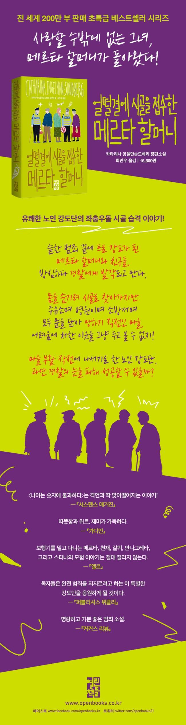 1948³â ½º¿þµ§¿¡¼ ÀÇ»çÀÎ ºÎ¸ð ¾Æ·¡ ž´Ù. 15³â µ¿¾È ¼öÁß °í°íÇÐÀÚ·Î Áö³ÂÀ¸¸ç, ½º¿þµ§ ½ºÅåȦ¸§ ÇØ¾ç ¹Ú¹°°ü, ³ë¸£¿þÀÌ ¿À½½·Î ÇØ¾ç ¹Ú¹°°ü, È£ÁÖ ¿þ½ºÅÏ¿À½ºÆ®·¹Àϸ®¾Æ ¹Ú¹°°ü¿¡¼ ÀÏÇÏ°í ½º¿þµ§ Àϰ£Áö ¡º½ºº¥½ºÄ« ´Ù±×ºí¶óµ¥Æ®¡»¿¡¼ ±âÀڷΠȰµ¿Çϱ⵵ Çß´Ù. ÀÛ°¡·Î¼ ¼Ò¼³, ¾î¸°ÀÌÃ¥, ¿¡¼¼ÀÌ µî ¿©·¯ À帣¿¡¼ 20Á¾ÀÇ Ã¥À» Æì³Â°í 1999³â¿¡ ¿ª»ç ¼Ò¼³·Î ¶ó¸£½º ºñµù»óÀ» ¼ö»óÇß´Ù. 2012³â ¹ßÇ¥ÇÑ ¡º°¨¿Á¿¡ °¡±â·Î ÇÑ ¸Þ¸£Å¸ ÇÒ¸Ó´Ï¡»·Î 2015³â ÀÌÅ»¸®¾Æ ·Î¸¶ ¼Ò¼³»óÀ» ¼ö»ó, ±íÀº ÅëÂû·Â°ú ±â¹ßÇÑ À¯¸Ó °¨°¢À» Áö³æ´Ù´Â Æò°¡¸¦ ¹ÞÀ¸¸ç º£½ºÆ®¼¿·¯ ÀÛ°¡·Î ¶°¿Ã¶ú´Ù. 2014³â°ú 2016³â¿¡ ÈÄ¼Ó ÆíÀÎ ¡º¸Þ¸£Å¸ ÇÒ¸Ó´Ï, ¶ó½ºº£À̰Žº·Î °¡´Ù¡»¿Í ¡º¸Þ¸£Å¸ ÇÒ¸Ó´ÏÀÇ ¿ì¾ÆÇÑ °µµ Àλý¡»À» ¹ßÇ¥Çß°í, ÀÌ ¿ª½Ã º£½ºÆ®¼¿·¯°¡ µÇ¾ú´Ù. ¸Þ¸£Å¸ ÇÒ¸Ó´Ï ½Ã¸®Áî´Â »çȸ°¡ ³ë³âÃþÀ» ´ëÇÏ´Â ¹æ½Ä¿¡ ºÒ¸¸À» ǰÀº ³ëÀεéÀÌ °µµ´ÜÀ» ²Ù·Á ±â»óõ¿ÜÇÑ ¹æ½ÄÀ¸·Î »çȸ¸¦ ¹Ù²ã ³ª°¡°íÀÚ ÇÏ´Â ³»¿ëÀ» ´ã°í ÀÖ´Ù. ÀÛ°¡´Â ¼Ò¼³ÀÇ ÁÖÀΰøÀÌÀÚ ³ëÀÎ °µµ´ÜÀÇ ¸®´õÀÎ ¸Þ¸£Å¸°¡ ÀڽŰú ´à¾Ò´Ù°í ¸»ÇÑ´Ù. ÀÌ ½Ã¸®Áî´Â ½º¿þµ§¿¡¼¸¸ 70¸¸ºÎ ÀÌ»ó, Àü ¼¼°èÀûÀ¸·Î 2¹é¸¸ ºÎ ³Ñ°Ô ÆÇ¸ÅµÇ¾ú°í 27°³±¹¿¡¼ ¹ø¿ª Ãâ°£µÇ¾ú´Ù. ¶Ç ½º¿þµ§ °ø¿µ ¹æ¼Û SVT¿¡¼ µå¶ó¸¶·Î Á¦ÀÛµÉ ¿¹Á¤ÀÌ´Ù.