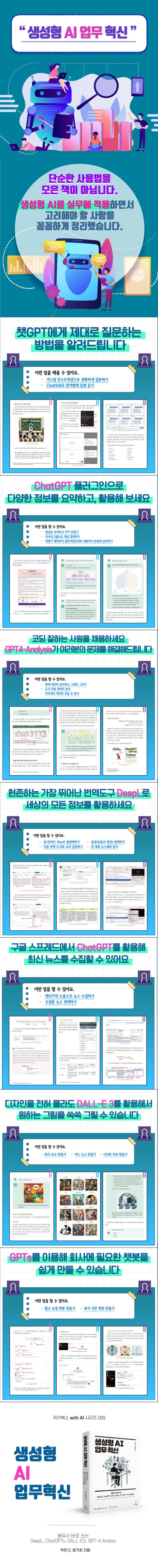 ÀΰøÁö´ÉÀÌ Àΰ£ÀÌ ÇÏ´Â ÀÏÀ» ¿ÏÀüÈ÷ ´ëüÇÏ´Â ¼¼»óÀÌ ¾ðÁ¦ ¿ÃÁö´Â ¸ð¸¥´Ù. ÇÏÁö¸¸, ÀΰøÁö´ÉÀ» Àß »ç¿ëÇÏ´Â »ç¶÷ÀÌ »ç¿ëÇÏÁö ¸øÇÏ´Â »ç¶÷À» ´ëüÇÏ´Â ¼¼»óÀº °ð µµ·¡ÇÒ °Í °°´Ù. 1³â µ¿¾È À§Å°ºÏ½º¿¡¼ Ãâ°£ÇÑ ´Ù¾çÇÑ »ý¼ºÇü AI µµ¼¸¦ ±âȹÇÏ°í °øºÎÇÏ¸é¼ Á¤¸®ÇÑ ³»¿ëÀ» Ã¥À¸·Î ¿«¾ú´Ù. Ã¥¿¡¼ Á¤¸®ÇÑ Áö½ÄÀÌ ¿©·¯ºÐÀÇ ¾÷¹«¸¦ ¹Ù²Ù´Â ù°ÉÀ½ÀÌ µÇ¾úÀ¸¸é ÇÑ´Ù.