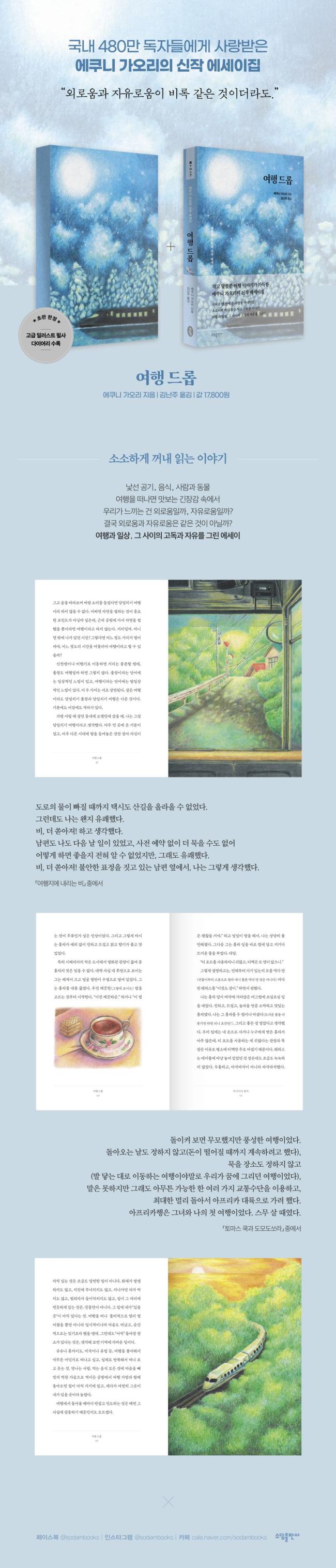 ¡º¿©Çà µå·Ó¡»¿¡´Â ¿©Çà°ú °ü·ÃµÈ ½Ã ¼¼ Æí°ú ´ÜÆí 36Æí, ¹ø¿Ü Æí ÇÑ ÆíÀÌ ½Ç·Á ÀÖ´Ù. ¿©ÇàÁö»Ó¸¸ ¾Æ´Ï¶ó ÀÏ»ó ¼Ó¿¡¼µµ ´À³¥ ¹ýÇÑ ±äÀå°ú ³¸¼´ ¶ÇÇÑ ¿¡¼¼ÀÌÀÇ ÁÖÁ¦ÀÌ´Ù.