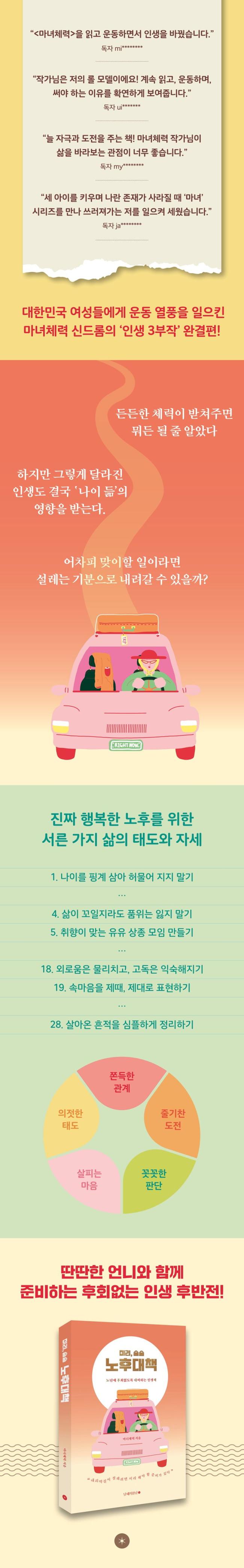 <¹Ì¸®, ½½½½ ³ëÈÄ´ëÃ¥>À» ÅëÇØ 60¼¼¸¦ ÇâÇÏ¸é¼ Ã¼·Â»Ó ¾Æ´Ï¶ó ŵµ, ½À°ü, ¸¶À½°¡Áü°ú Á¤¸®¿¡ À̸£±â±îÁö ²À ÇÊ¿äÇÑ ½Çõ °·ÉÀ» ¸¶·ÃÇß´Ù. ºñ·Î¼Ò »ý°¢Çϰí ÇൿÇÏ´Â ¿©¼ºÀ¸·Î »ì¾Æ¿Â ¡®¸¶³àÀÇ Àλý 3ºÎÀÛ¡¯À» ¸¶¹«¸®ÇÑ ±âºÐÀÌ´Ù.