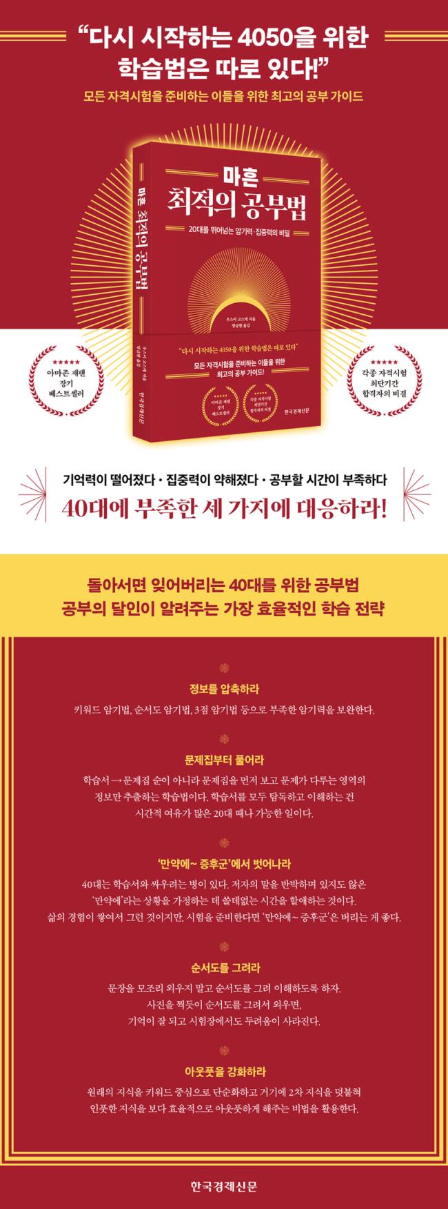 ÀÚ°ÝÁõÃëµæÇпø¿¡¼ ¼ö¸¹Àº ¡®40´ë ¼öÇè»ý¡¯À» ÁöµµÇÑ ÀúÀÚ´Â 40´ëÀÇ °øºÎ¹ýÀº Á¢±Ù¹æ½ÄÀÌ ´Þ¶ó¾ß ÇÑ´Ù°í ¸»ÇÑ´Ù. ÇнÀ¼¸¦ ¿Ïµ¶ÇÏ°í ¹®Á¦ÁýÀ» Ǫ´Â °ÍÀº 10´ë Çлýµé¿¡°Ô³ª °¡´ÉÇÑ °øºÎ¹æ¹ýÀ̸ç, ¹®Á¦·ÎºÎÅÍ ÇÊ¿äÇÑ Á¤º¸¸¦ Ãß·Á³»°í ÇнÀ¼ÀÇ ÇØ´ç ³»¿ë¸¸ ¾Ï±âÇÏ´Â ¹æ½ÄÀ¸·Î ¿ª»ê(æ½ß©)ÇØ¾ß ÇÑ´Ù°í ÁÖÀåÇÑ´Ù. 40´ë´Â ½º½º·Î ¡®ÁøÂ¥ °øºÎ¡¯¸¦ ½ÃÀÛÇÏ´Â ³ªÀÌ´Ù. »îÀÇ Áö°æÀÌ ³Ð¾îÁ³°í, ±× °¡¿îµ¥¼ »õ·Î¿î ÁöÇý¸¦ Å͵æÇ߱⿡, »õ·Î¿î µµÀüÀÌ ÇÏ°í ½ÍÀ» ÅÍ´Ù. ³ÑÄ¡´Â ÀÇ¿åÀ¸·Î °øºÎ¸¦ ½ÃÀÛÇÏ´Â 40´ë¿¡°Ô ±×¿¡ ¸Â´Â °øºÎ¹ýÀ» Á¦¾ÈÇÑ´Ù.