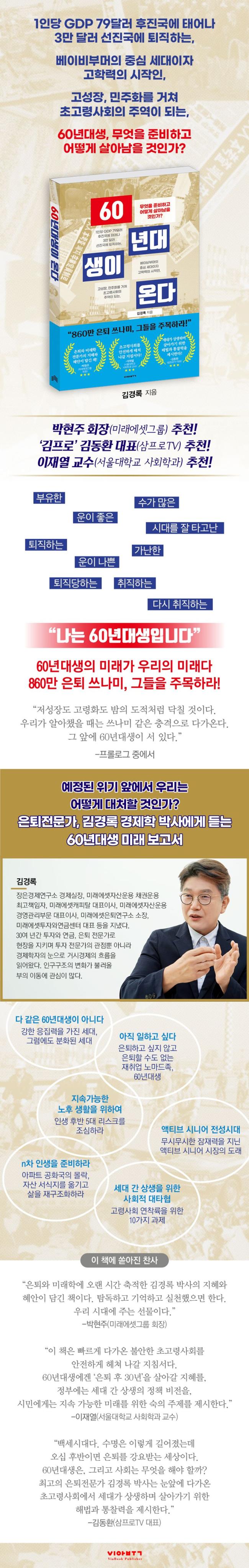 ¾ÐµµÀûÀÎ Àα¸¼ö·Î ¡®º£À̺ñºÎ¸Ó¡¯¶ó°í ºÒ¸®´Â ¼¼´ë, °íµµ¼ºÀå±â¿Í ¹ÎÁÖȸ¦ ÇÔ²² °ÞÀ¸¸ç ´Ü´ÜÇÑ µ¿Áú°¨À» Áö´Ï°Ô µÈ ¼¼´ë. ¿À´Ã³¯ 60³â´ë»ýÀº ¿ì¸® »çȸ¿¡¼ ¾î¶² À§Ä¡¸¦ Â÷ÁöÇϰí ÀÖÀ»±î? 1988³â ±¹¹Î¿¬±ÝÀÌ µµÀÔµÈ ÀÌÈÄ ¾à 30¿© ³â°£ ¿¬±ÝÀ» ³³ºÎÇÑ ÀÌµé ¼¼´ë´Â ÃÖÃÊÀÇ ÁغñµÈ ³ëÀμ¼´ë·Î¼ ³ëÈÄ °èȹÀ» ÀÌÇàÇϰí ÀÖÀ»±î? ¼¼´ë ³» ¾ç±ØÈ¿Í ¼¼´ë °£ ºÒÆòµîÀ» ÇØ¼ÒÇϱâ À§ÇØ ¿ì¸® »çȸ´Â ¹«¾ùÀ» ÇØ¾ß ÇÒ±î? ±×¸®°í ¿ì¸®´Â ¿Ö 60³â´ë»ýÀ» ÁÖ¸ñÇØ¾ß ÇÒ±î? ¹Ì·¡¿¡¼ÂÀÚ»ê¿î¿ë °æ¿µÀÚ¹®¿ªÀÌÀÚ °æÁ¦ÇÐ ¹Ú»ç·Î ¿À·§µ¿¾È ÀºÅð¿Í ¿¬±Ý ¹®Á¦¸¦ ¿¬±¸Çؿ ±è°æ·Ï ¹Ú»ç°¡ ÀÌ ¹®Á¦¸¦ º»°ÝÀûÀ¸·Î ÆÄÇìÄ£´Ù. 2025³âÀÌ¸é ¿ì¸®³ª¶ó´Â 65¼¼ ÀÌ»óÀÇ ³ëÀÎ Àα¸°¡ 20%¸¦ ³Ñ¾î°¡´Â Ãʰí·É»çȸ¿¡ ÁøÀÔÇÑ´Ù. 2070³âÀÌ µÇ¸é 2¸í Áß 1¸íÀº 65¼¼ ÀÌ»óÀÇ °í·ÉÀÚ°¡ µÉ Àü¸ÁÀÌ´Ù. ÇÑÆí ¿ì¸®³ª¶ó ³ëÀÎ ºó°ïÀ²Àº 2018³â ±âÁØ 43.4%·Î OECD ±¹°¡ Æò±Õ ³ëÀÎ ºó°ïÀ²ÀÎ 13.1%¿¡ ºñÇØ Å©°Ô ¾Õ¼°í, ¼¼´ë °£ °¥µîÀº Á¡Á¡ ½ÉÇØÁö´Â Ãß¼¼´Ù. ÀÌÁ¦ ¸· ÀºÅ𠿬·É¿¡ Á¢¾îµç 60³â´ë»ýÀÇ ¹Ì·¡´Â °ð ¿ì¸® »çȸÀÇ Áö¼Ó°¡´É¼ºÀ» Å×½ºÆ®ÇÏ´Â ¸®Æ®¸Ó½º ½ÃÇèÁö¿Í ´Ù¸§¾ø´Ù. 60³â´ë»ýÀÌ º»°ÝÀûÀ¸·Î ÀºÅðÇϱ⠽ÃÀÛÇÏ´Â ¹Ù·Î Áö±Ý, À̵éÀ» Á¦´ë·Î µé¿©´ÙºÁ¾ß ÇÑ´Ù.