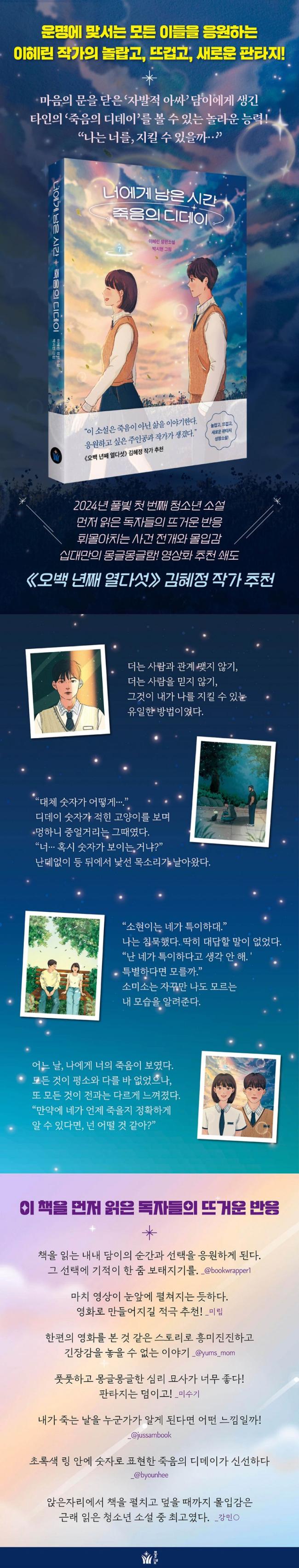 ºÎ¸ð´ÔÀÇ Á×À½ ÀÌÈÄ, ŸÀεéÀÇ Á×À½±îÁö ³²Àº ³¯Â¥¸¦ º¼ ¼ö ÀÖ´Â ¡®Á×À½ÀÇ µðµ¥ÀÌ¡¯ ´É·ÂÀ» °®°Ô µÈ °íµîÇлý ´ãÀÌ. Á×À½±îÁö ¸çÄ¥ ³²Áö ¾ÊÀº Ä£ÇÑ Ä£±¸¸¦ ±¸ÇÏ·Á´Ù ½ÇÆÐÇÑ °æÇèÀÌ ÀÖ´Â ´ãÀÌ´Â ´õ ÀÌ»ó ³²µéÀÇ Á×À½¿¡ °ü¿©ÇÏÁö ¾Ê°í, »ç¶÷°ú ¼¼»ó¿¡ ´ëÇØ ´«°ú ±Í¸¦ ´Ý°í »ì¾Æ°£´Ù. ±×·¯´Ù ¾î´À ³¯, °Ü¿ì ¸¶À½À» ¿¾î »ç±Í°Ô µÈ ¿©ÀÚ Ä£±¸ ¼Ò¹Ì¼ÒÀÇ ¸Ó¸® À§¿¡µµ Á×À½ÀÇ µðµ¥À̸¦ ³ªÅ¸³»´Â Çü±¤»ö ¸µÀÌ ¶°¿À¸£´Âµ¥¡¦.