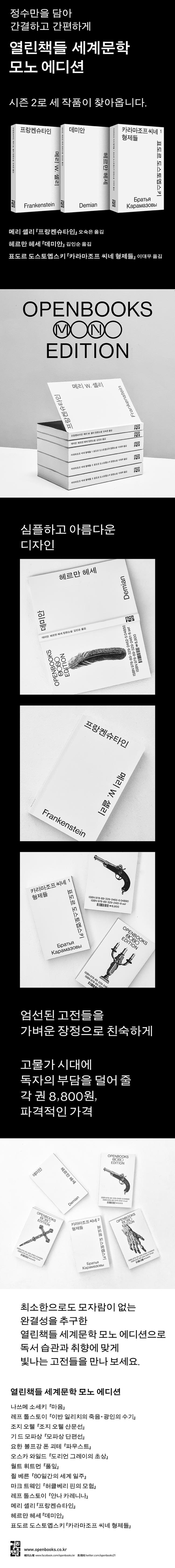 ¿¸°Ã¥µé ¼¼°è¹®Çп¡¼ ²ÙÁØÈ÷ »ç¶û¹Þ¾Æ ¿Â ÀÛǰµéÀ» ¾ö¼±ÇÑ Ä÷º¼ÇÀÌ ¸ð³ë ¿¡µð¼ÇÀ̶ó´Â À̸§À¸·Î ¼±º¸ÀδÙ. ¼¼°è¹®ÇÐ ÀüÁýÀÇ Á¤¼ö¸¸À» ´ã¾Æ ÇÑÃþ °£°áÇÏ°í °£ÆíÇÑ ÇüÅ·ΠÆì³½ ¸ð³ë ¿¡µð¼ÇÀº ÀÛǰ ¼±Á¤¿¡¼ Ã¥ÀÇ ÀåÁ¤±îÁö, ´ú¾î ³»°í ¶Ç ´ú¾î ³» °í°»À̸¸À» ´ã¾Ò´Ù.