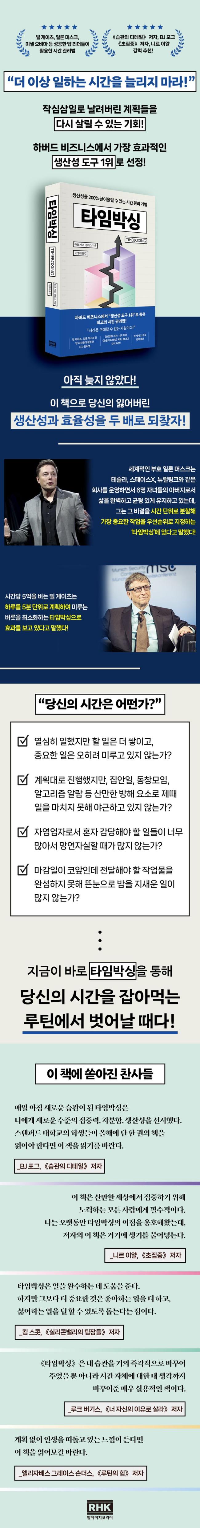 ÀÌ Ã¥ ¡¶Å¸Àӹڽ̡·Àº ±×µ¿¾È ¿ì¸®°¡ ÇØ¿Ô´ø ½Ã°£ °ü¸® ½Ã½ºÅÛÀ» ½ÇÆÐ ¾øÀÌ Á¦´ë·Î ²ø¾î¿Ã¸± ¼ö ÀÖ´Â ºñ¹ýÀ» Á¦½ÃÇÑ´Ù. ¡®Å¸Àӹڽ̡¯À̶ó´Â ´Ù¼Ò »ý¼ÒÇÑ ´Ü¾î°¡ ¾î»öÇÒ ¼ö ÀÖÁö¸¸ ¿ì¸®°¡ ±×µ¿¾È Àͼ÷ÇÏ°Ô È°¿ëÇØ¿Ô´ø ÇÒ ÀÏ ¸ñ·Ï°ú ÀÏÁ¤Ç¥ÀÇ Á¶ÇÕÀ̶ó°í »ý°¢ÇÏ¸é µÈ´Ù. ±×·¸´Ù¸é ±×µ¿¾È ÇØ¿Ô´ø ÇÒ ÀÏ ¸ñ·Ï°ú ÀÏÁ¤Ç¥ °èȹ¿¡¼ ¿ì¸®´Â ¿Ö ³«¿ÀµÇ¾î º»ÀÇ ¾Æ´Ï°Ô ¹Ì·ç´Â ½À°üÀ» ±â¸£°Ô µÇ°í, ¡®½Ã°£ÀÌ ¾ø´Ù¡¯¸ç ¿¿¸Ì³ª? ÀÌ Ã¥Àº ½Ã°£À» °èȹ¿¡¼ ½ÇÇà, ±×¸®°í ¹æ¹ý°ú °á°ú±îÁö ´Ü°èº°·Î Ȱ¿ëÇÏ¿© »ý»ê¼ºÀ» µÎ ¹è·Î ¿Ã¸± ¼ö ÀÖ´Â ¹æ¹ýÀ» Á¦½ÃÇØÁÖ°í ÀÖ´Ù. ÀúÀÚ´Â 10³â°£ÀÇ Å¸ÀÓ¹Ú½Ì ½ÇÇàÀ» ÅëÇØ Áõ¾ðÇϵíÀÌ Á¤¸®ÇØ µ¶ÀÚµéÀÇ ½ÇÆÐÀ² Á¦·ÎÀÇ ½Ã°£ °ü¸®¹ýÀ» ÀüÇϰí ÀÖ´Ù.