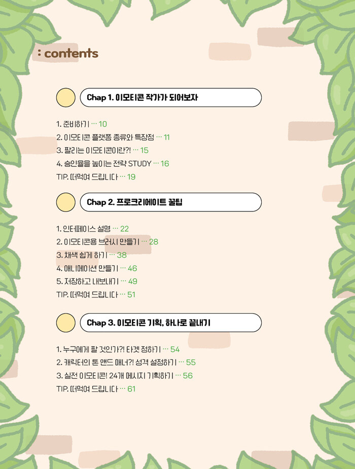 SNS ÈÁ¦ÀÇ ÄÜÅÙÃ÷ ¡®1ºÐ ¸¸¿¡ ±×¸®±â¡¯ Æ÷¸£Æ÷¸£ ½ºÆ©µð¿ÀÀÇ À̸ðƼÄÜ Á¦ÀÛ ³ëÇϿ츦 ´ãÀº ù ¹øÂ° Ã¥ÀÌ Ãâ°£µÇ¾ú´Ù. īī¿À, ³×À̹ö¸¦ Æ÷ÇÔÇÑ ¸ðÈ÷Åå, ½ºÆ¼ÆË, ÀÌ¸ðÆ½ ¹Ú½º±îÁö ´ëÇ¥ Ç÷§Æû 8°³ ºÐ¼®°ú ½ÂÀι޴ ±âȹ ²ÜÆÁÀ» Á¦°øÇϸç Á÷Á¢ ±âȹ ½ÃÆ®¸¦ ¿Ï¼ºÇØ º¼ ¼ö ÀÖ´Ù. ±âȹ ½ÃÆ®´Â QRÄڵ带 ÅëÇØ ÆÄÀÏ·Î Á¦°øÇÏ¿© ¹«ÇÑ »ç¿ëÇÒ ¼ö ÀÖ´Ù. ÀÌ Ã¥Àº ÅøÀÇ ±â´Éº¸´Ù ½ÇÁ¦ À̸ðƼÄÜÀ» ¸¸µé¾îº¸´Â ½Ç½À¿¡ ÁýÁßÇÒ ¼ö ÀÖµµ·Ï ±¸¼ºÇÏ¿©, ÇÁ·ÎÅ©¸®¿¡ÀÌÆ®´Â À̸ðƼÄÜ ¸¸µé±â¿¡ ²À ÇÊ¿äÇÑ Çʼö ±â´É¸¸ ÀÍÈú ¼ö ÀÖµµ·Ï ÇÏ¿´À¸¸ç À̸ðƼÄܰú °¡Àå Àß ¾î¿ï¸®´Â ºê·¯½ÃµéÀ» Á÷Á¢ ¸¸µé¾î º¼ ¼ö ÀÖµµ·Ï Æ©Å丮¾óÀ» Á¦°øÇÑ´Ù. Ãß°¡·Î ½ÇÁ¦ ÀÛ°¡°¡ »ç¿ëÇÏ´Â ºê·¯½Ã¿Í Ä÷¯ ÆÈ·¹Æ®µµ Á¦°øÇÏ¿© Àü¹®°¡ÀÇ ³ëÇϿ쵵 ÇÔ²² °æÇèÇØ º¼ ¼ö ÀÖ´Ù. À̸ðƼÄÜ Á¦ÀÛ Ã©ÅÍ¿¡¼´Â ÀÌ¿ëÀÚµéÀÌ °¡Àå ¸¹ÀÌ »ç¿ëÇÏ´Â »óȲº° À̸ðƼÄܰú ÇÔ²² °èÀý, Ưº°ÇÑ ³¯ »ç¿ëÇÒ ¼ö Àִ Ư¼ö À̸ðƼÄܱîÁö ½ÇÁ¦ µî·Ï °¡´ÉÇÑ À̸ðƼÄÜ ÇÑ ¼¼Æ®¸¦ °£´ÜÇÏ°Ô ¿Ï¼ºÇÒ ¼ö ÀÖ´Ù. ¿Ï¼ºµÈ ¸ØÃã À̸ðƼÄÜÀ» ÀÀ¿ëÇÏ¿© 24°³ÀÇ ¸ð¼Ç À̸ðƼÄÜ ¼¼Æ®µµ ¿Ï¼ºÇÒ ¼ö ÀÖ¾î ¸ð¼Ç À̸ðƼÄÜÀ» óÀ½ Á¢ÇÏ´Â »ç¶÷µµ ¸ð¼Ç À̸ðƼÄܱîÁö ½±°Ô Á¦ÀÛÇÒ ¼ö ÀÖ´Ù.