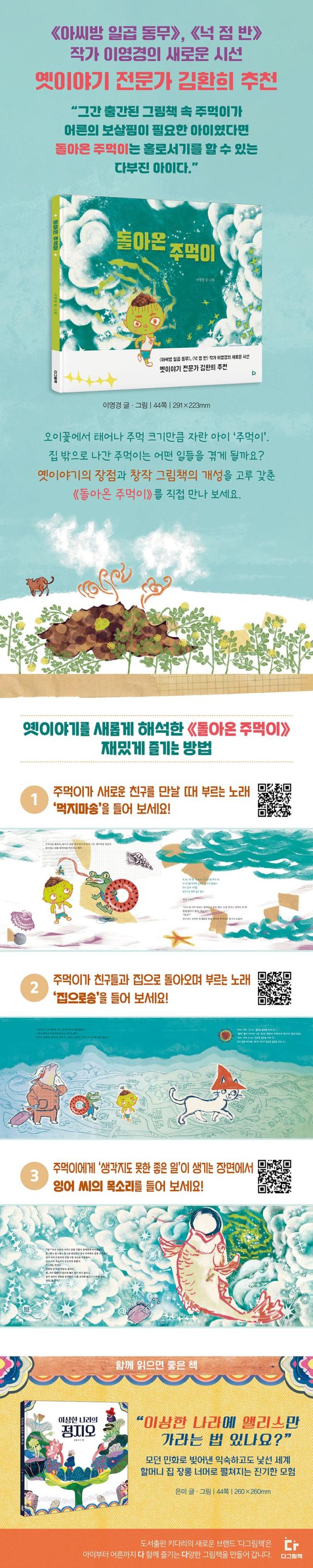 ¿ÀÀ̲ɿ¡¼ ž ÁÖ¸Ô Å©±â¸¸Å ÀÚ¶õ ¾ÆÀÌ ÁÖ¸ÔÀÌ´Â Áý ¹ÛÀ¸·Î ³ª°¬´Ù°¡ ¿©·¯ »ç°ÇÀ» °Þ½À´Ï´Ù. À×¾î¿Í Ȳ¼Ò¿¡°Ô »ïÄÑÁ® ¹è ¼Ó ±¸°æÀ» ÇÏ´Â ¸ð½ÀÀº Áö±Ý±îÁö ¾Ë·ÁÁø ¡®ÁÖ¸ÔÀÌ¡¯¿Í ºñ½ÁÇÏÁö¸¸, ¡®µ¹¾Æ¿Â ÁÖ¸ÔÀÌ¡¯´Â ÈξÀ ´õ ÁÖüÀûÀ̰í Àû±ØÀûÀΠij¸¯ÅÍÀÔ´Ï´Ù. ÀÌ ÀÛǰ¿¡¼ ÁÖ¸ÔÀÌ´Â µµÅ丮, ¶ËÆÄ¸®, °³±¸¸®, À×¾î ¾¾ µî ´Ù¾çÇÑ Ä£±¸µéÀ» »ç±Í°í, À̵éÀÌ ¼·Î¸¦ ÇØÄ¡Áö ¸øÇÏ°Ô ³ª¸§ÀÇ ±âÁö¸¦ ¹ßÈÖÇÕ´Ï´Ù. ¡º¾Æ¾¾¹æ Àϰö µ¿¹«¡»,¡º³Ë Á¡ ¹Ý¡» µîÀ¸·Î Å« »ç¶ûÀ» ¹Þ¾Æ ¿Â ±×¸²Ã¥ ÀÛ°¡ ÀÌ¿µ°æÀº ¡ºµ¹¾Æ¿Â ÁÖ¸ÔÀÌ¡»¿¡ °³¼º ³ÑÄ¡´Â ij¸¯ÅÍ¿Í Àå¸é ±¸¼º, Àλý¿¡ ´ëÇÑ Æ÷¿ëÀûÀÎ °¡Ä¡°üÀ» ´ã¾Ò½À´Ï´Ù. ¶ÇÇÑ ÀÛ°¡°¡ Á÷Á¢ ¸¸µé°í ºÎ¸¥ ³ë·¡µéÀº ±×¸²Ã¥À» ´õ¿í Áñ°Ì°í »ý»ýÇÑ ¹æ½ÄÀ¸·Î Áñ±â°Ô ÇÕ´Ï´Ù.