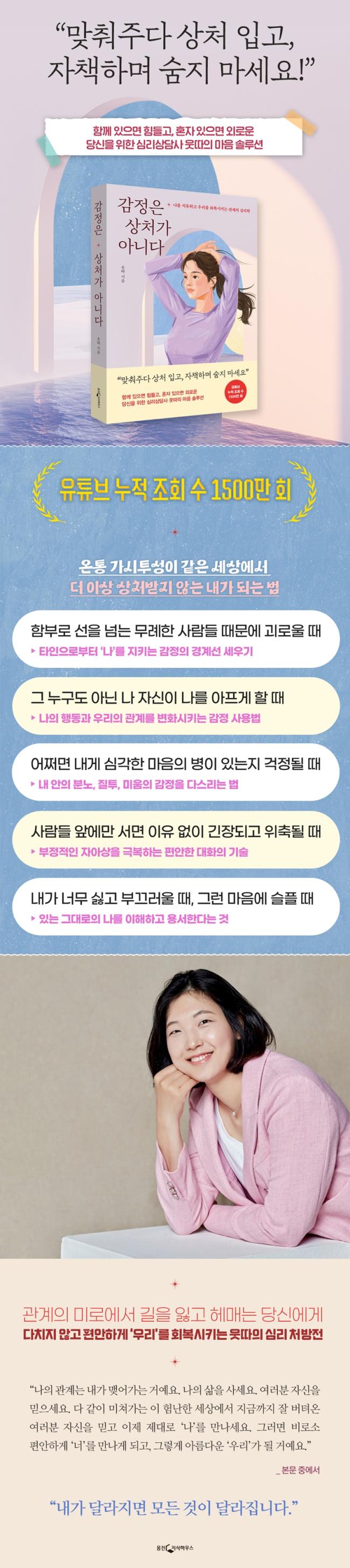 ÀÌ Ã¥Àº ±×°¡ À¯Æ©ºê ¿µ»ó°ú »ó´ãÀ» ÅëÇØ µé·ÁÁÖ¾ú´ø ´Ù¾çÇÑ ½É¸®Àû ¹®Á¦¿¡ ´ëÇÑ Á¶¾ðµé Áß¿¡¼ ƯÈ÷ ´ëÀÎ °ü°è ¹®Á¦¿¡ ÃÊÁ¡À» ¸ÂÃß¾ú´Ù. ŸÀÎÀÇ ¸» ÇѸ¶µð¿¡µµ ½±°Ô Ä¡ÀÌ°í ¹«³ÊÁö´Â »ç¶÷µé¿¡°Ô °¨Á¤Àº »óó°¡ ¾Æ´Ï¸ç, ÀÚ½ÅÀÇ °¨Á¤À» Á¦´ë·Î ÀÐ°í ¾ð¾î·Î Ç¥ÇöÇÒ ¶§ ºñ·Î¼Ò °Ç°ÇÑ °ü°è·Î ³ª¾Æ°¥ ¼ö ÀÖ´Ù´Â Á¶¾ðÀ» ºÎµå·´°í ¸íÄèÇÏ°Ô Àü´ÞÇÑ´Ù.