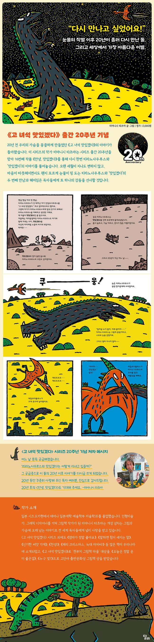 20³â Àü ¿ì¸®ÀÇ °¡½¿À» ¹¶Å¬ÇÏ°Ô ¸¸µé¾ú´ø ¡º°í ³à¼® ¸ÀÀÖ°Ú´Ù¡»ÀÇ À̾߱Ⱑ µ¹¾Æ¿Ô½À´Ï´Ù. ¾Ë¿¡¼ ±ú¾î³ ¾Æ±â ¾Èų·Î»ç¿ì·ç½º¿¡°Ô Àڱ⵵ ¸ð¸£°Ô ¡®¸ÀÀÖ°Ú´Ù¡¯¶õ À̸§À» ºÙ¿© ÁØ Ãʺ¸ ¾Æºü Ƽ¶ó³ë»ç¿ì·ç½ºÀÇ ´Ù¼Ò ¾û¶×Çϸ鼵µ °¨µ¿ÀûÀÎ À̾߱Ⱑ óÀ½ ¼¼»ó¿¡ ³ª¿À°í 20³âÀÌ È帥 Áö±Ý±îÁöµµ ¾î¸°ÀÌ¿¡¼ ¼ºÀαîÁö ¸¹Àº µ¶ÀÚ¿¡°Ô »ç¶û¹Þ¾Æ ¿Ô½À´Ï´Ù. ´öºÐ¿¡ ¡´°í ³à¼® ¸ÀÀÖ°Ú´Ù¡µ½Ã¸®Áî´Â ±×¸²Ã¥»Ó¸¸ ¾Æ´Ï¶ó ¾Ö´Ï¸ÞÀ̼Ç, Àб⹰ µî ´Ù¾çÇÑ ÇüÅ·Πº¯ÁֵǸç ÁøÂ¥ ¡®¼ÒÁßÇÑ °Í¡¯Àº ¹«¾ùÀÎÁö ´Ù¾çÇÑ »ç¶ûÀÇ ÇüŸ¦ ±×·Á ¿Ô½À´Ï´Ù.