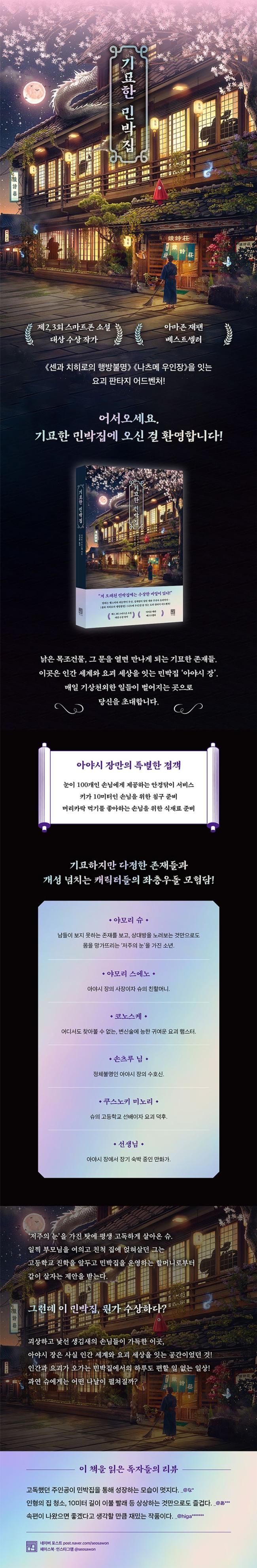 ÀúÁÖ¹ÞÀº ´« ¶§¹®¿¡ Æò»ý °íµ¶Çß´ø ¼Ò³â ¾ß¸ð¸® ½´°¡ ¹Î¹ÚÁý¿¡¼ ÀÏÇÏ¸é¼ ÀÚ½ÅÀÇ ÇѰ踦 ±Øº¹Çϰí, Àΰ£°ú ¿ä±«, ´Ù¾çÇÑ Àι°µé°úÀÇ °ü°è¸¦ ÅëÇØ ¡®È¥ÀÚ¡¯¿¡¼ ¡®ÇÔ²²¡¯ ÇÏ´Â »îÀ¸·Î ÇâÇØ °¡´Â ¼ºÀå ¼»ç´Â ´Ü¼øÇÑ Àç¹Ì¸¦ ³Ñ¾î ¸¶À½ µûµíÇØÁö´Â °¨µ¿±îÁö ¼±»çÇÑ´Ù. ±Í¿©¿î ¿ä±« ÇܽºÅÍ, ¿ä±« ´öÈÄ ¿©°í»ý, ¹Ì½ºÅ͸®ÇÑ ¹Î¹ÚÁý ÁÖÀÎÀå, ¹Î¹ÚÁý¿¡ Àå±â ¼÷¹Ú ÁßÀÎ ¸¸È°¡ µî °³¼º °ÇÑ Ä³¸¯Å͵é°ú ¶§·Î ÄÚ¹ÍÇÏ°í ¶§·Î ÄÚ³¡ ½Ã¸®°Ô ÇÏ´Â ¹ÚÁø°¨ ³ÑÄ¡´Â ½ºÅ丮 Àü°³ ¿ª½Ã »©³õÀ» ¼ö ¾ø´Â ¸Å·Â Æ÷ÀÎÆ®´Ù. Àΰ£°ú ¿ä±«, ¾î¿ï¸®Áö ¾ÊÀ» °Í °°Àº µÎ Á¸Àç°¡ ¸¸µé¾î³»´Â ³¸¼³Áö¸¸ Èï¹Ì·Î¿î ¿ä±« ÆÇŸÁöÀÇ ¼¼°è·Î ¶°³ªº¸ÀÚ.