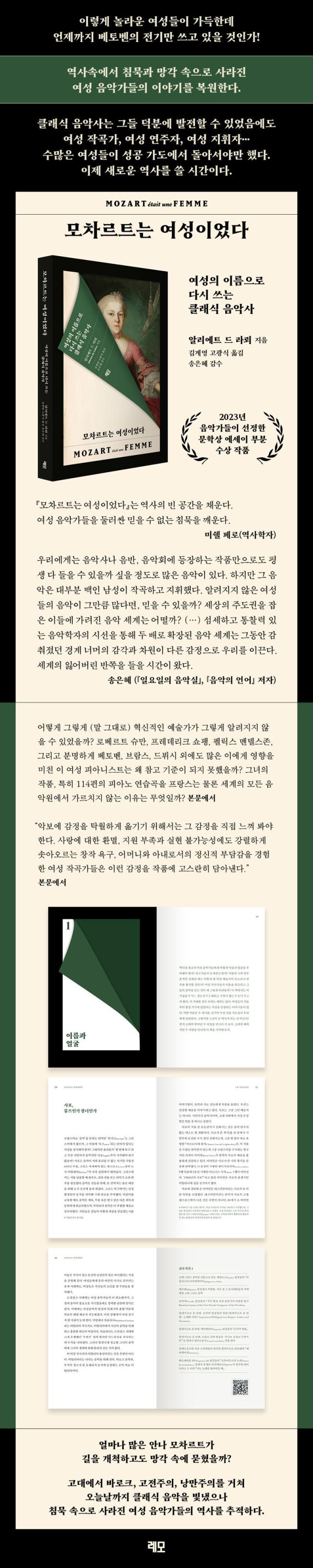 ¡º¸ðÂ÷¸£Æ®´Â ¿©¼ºÀ̾ú´Ù¡»¿¡¼ ÀúÀÚ ¾Ë¸®¿¡Æ® µå ¶ó·Ú´Â ¼ö¸¹Àº ¸¶¸®¾Æ ¾È³ª ¸ðÂ÷¸£Æ®¸¦ À̾߱âÇÑ´Ù. ¿ª»ç°¡ Á¦´ë·Î ±â·ÏÇÏÁö ¾Ê¾ÒÀ¸³ª ¾î´À ½Ã´ë, ¾î´À ³ª¶ó¿¡³ª ÀÚ±â ÀÚ¸®¿¡ ÀÖ¾ú´ø ¿©¼º À½¾Ç°¡µéÀ» À̾߱âÇÑ´Ù. Ŭ·¡½ÄÀÇ ¹ßÀü¿¡ Å« °øÇåÀ» ÇßÀ½¿¡µµ, °¡ºÎÀåÁ¦ÀÇ ±×´Ã¿¡ °¡·Á ħ¹¬°ú ¸Á°¢ ¼Ó¿¡ ÀØÈ÷°í ¸¸ À̸§µéÀ» ´Ù½Ã ºÒ·¯³½´Ù. °í´ëÀÇ »çÆ÷ºÎÅÍ ½ÃÀÛÇØ °íÀüÁÖÀÇ, ³¶¸¸ÁÖÀǸ¦ °ÅÃÄ ¿À´Ã³¯¿¡ À̸£±â±îÁö Ŭ·¡½Ä À½¾ÇÀÇ ÁÖ¿ä ºÐ±âÁ¡µéÀ» ÈÈÀ¸¸ç, ¾î¶² ¿©¼ºµéÀÌ ¾î¶»°Ô Æí°ß°ú ½Î¿ì¸ç Àڱ⸸ÀÇ À½¾ÇÀ» ¸¸µé°í ¿¬ÁÖÇß´ÂÁö, ±× À§´ëÇÑ »îÀ» º¹¿øÇÑ´Ù. À½¾Ç¿ø¿¡ ÀÔÇÐÀ» °ÅºÎ´çÇÏ°í ¡®¿©¼º½º·´Áö ¸øÇÏ´Ù´Â ÀÌÀ¯·Î¡¯ ¾Ç±â¸¦ ±ÝÁö´çÇÏ´Â µî °®Àº Â÷º°À» ¹ÞÀ¸¸é¼µµ ´Ù¾çÇÑ ¹æ½ÄÀ¸·Î À½¾Ç ¼¼°è¿¡ Âü¿©Çß´ø ¿©¼ºµéÀÇ °í±ººÐÅõ°¡ ½Ã´ë¸¦ °ÅÃÄ À̾îÁø´Ù. ÀÌ À§´ëÇÑ ¿©¼º À½¾Ç°¡µéÀÇ ¿ª»ç¸¦ µÇ»ì¸²À¸·Î½á Ŭ·¡½Ä À½¾ÇÀÌ ´õ¿í dz¿ä·Î¿öÁö´Â °ÍÀº ¹°·Ð ¿©¼º À½¾Ç°¡µé¿¡°Ô ´õ ¸¹Àº ¿µ°¨À» ÁÙ ¼ö ÀÖÀ» °ÍÀÌ´Ù.